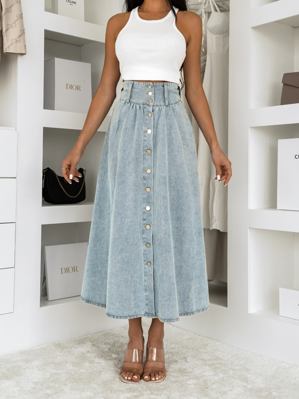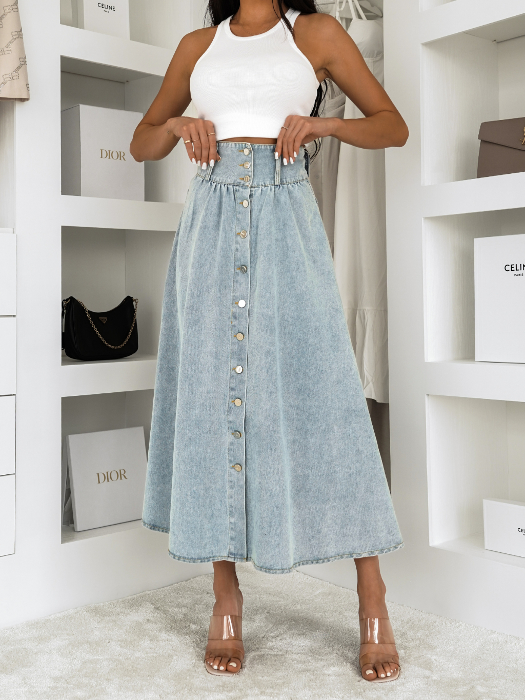 Modrá dlhá džínsová sukňa SAPHIRA na gombíky