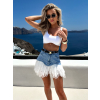 Modrá džínsová krátka sukňa AURIELLE s čipkou