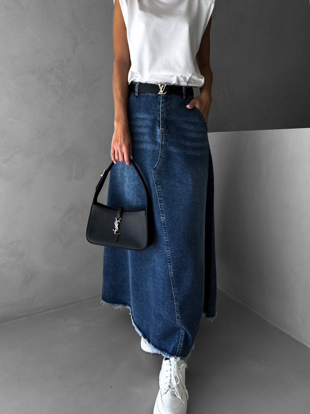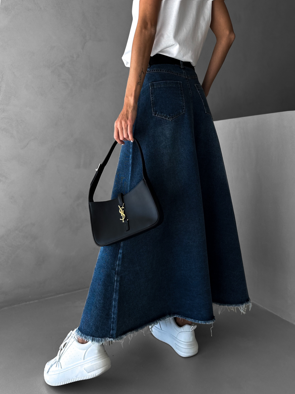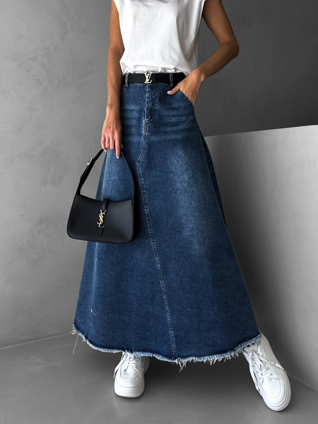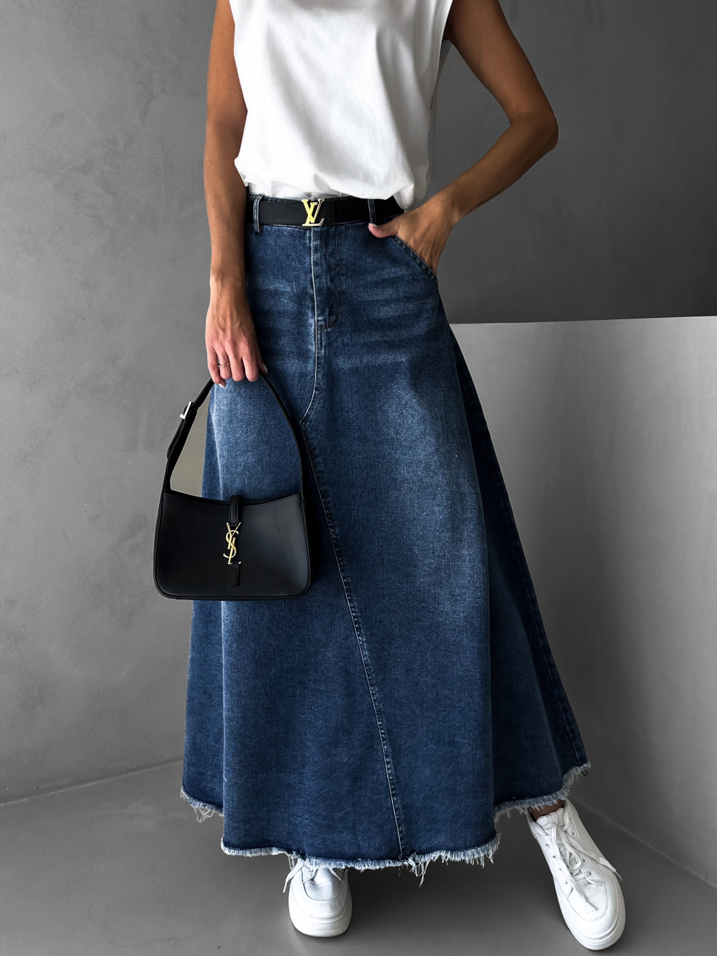 Modrá široká džínsová dlhá sukňa LAUCEN