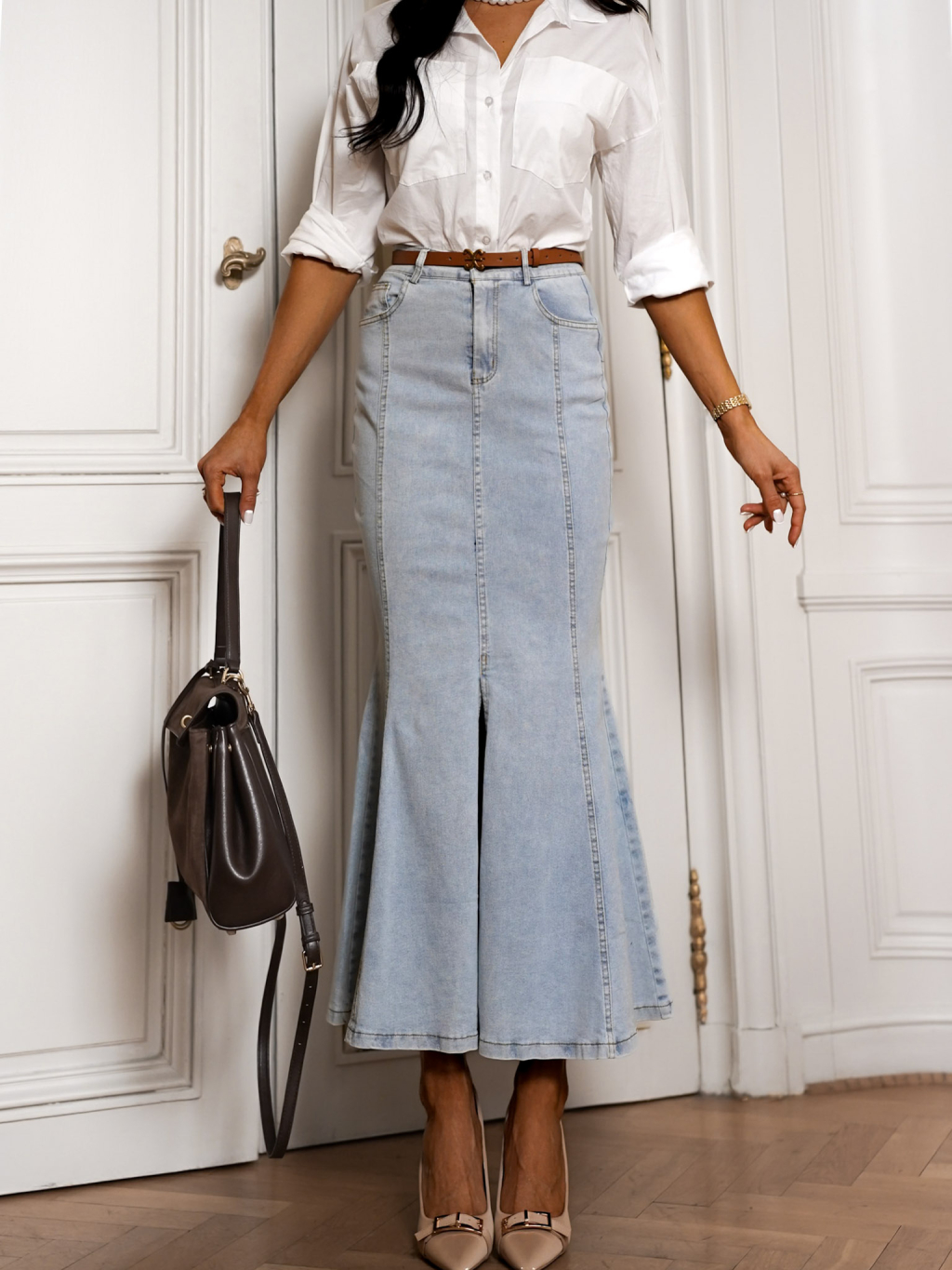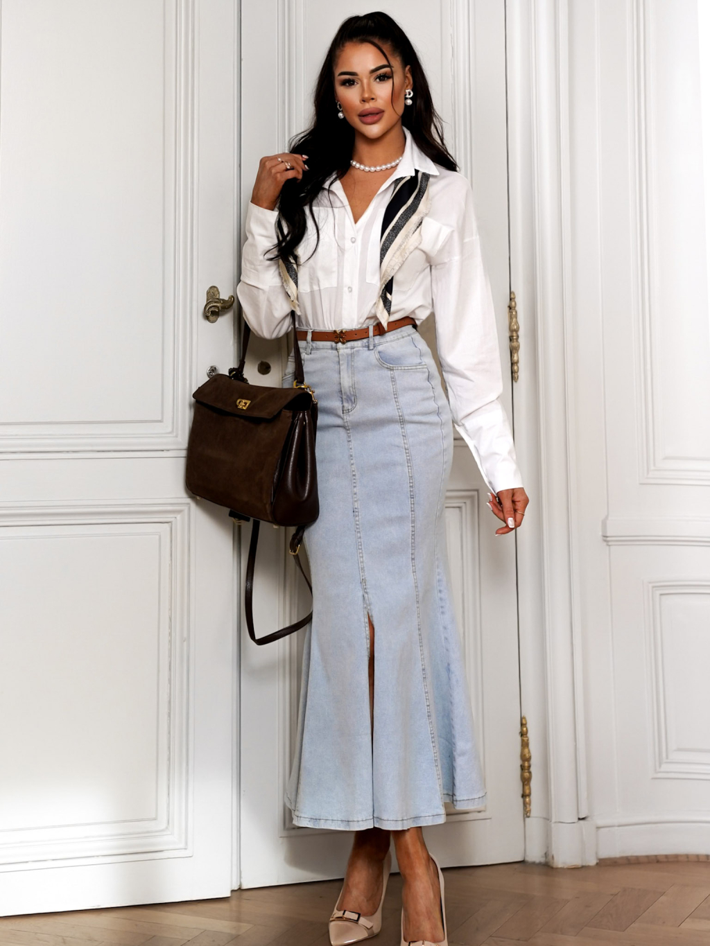 Svetlá dlhá džínsová sukňa DAMIOS s rázporkom