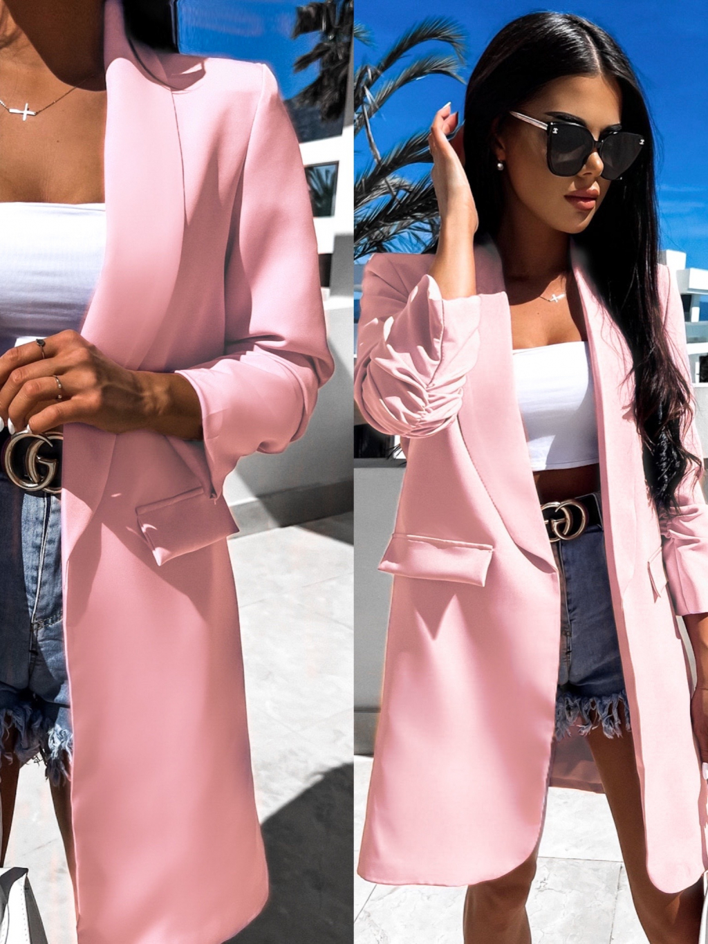 Baby ružové elegantné sako CASTIEL otvoreného štýlu