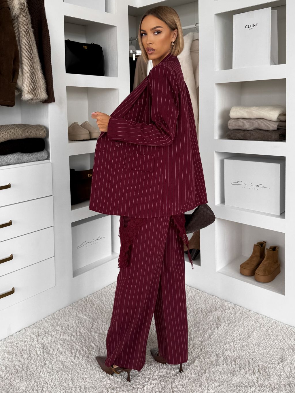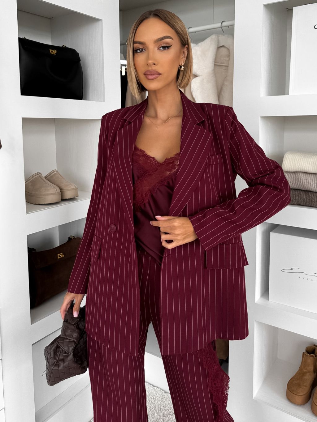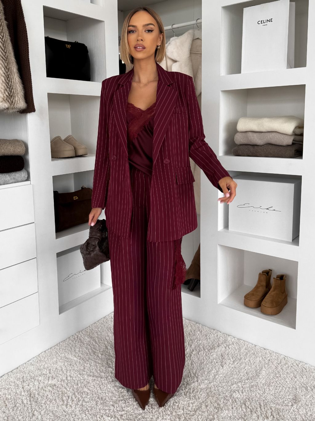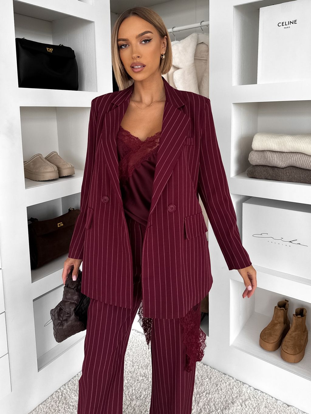 Bordó pruhované elegantné sako LEXUMA