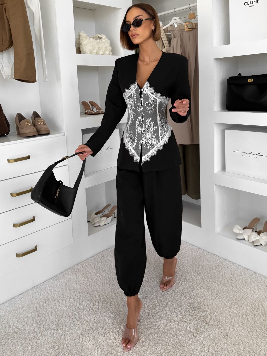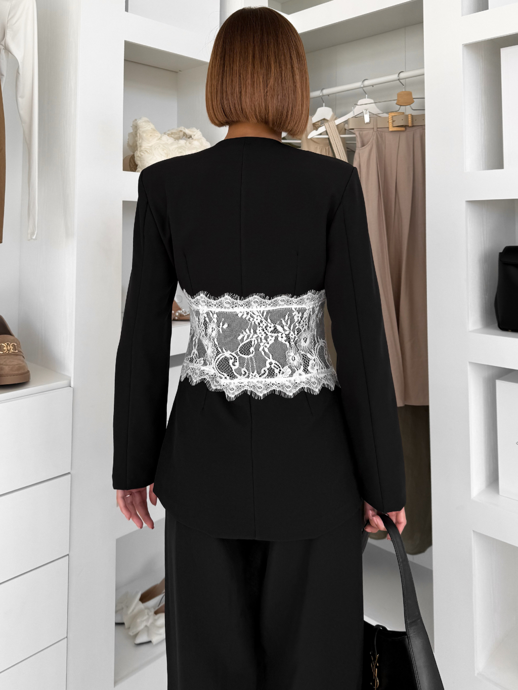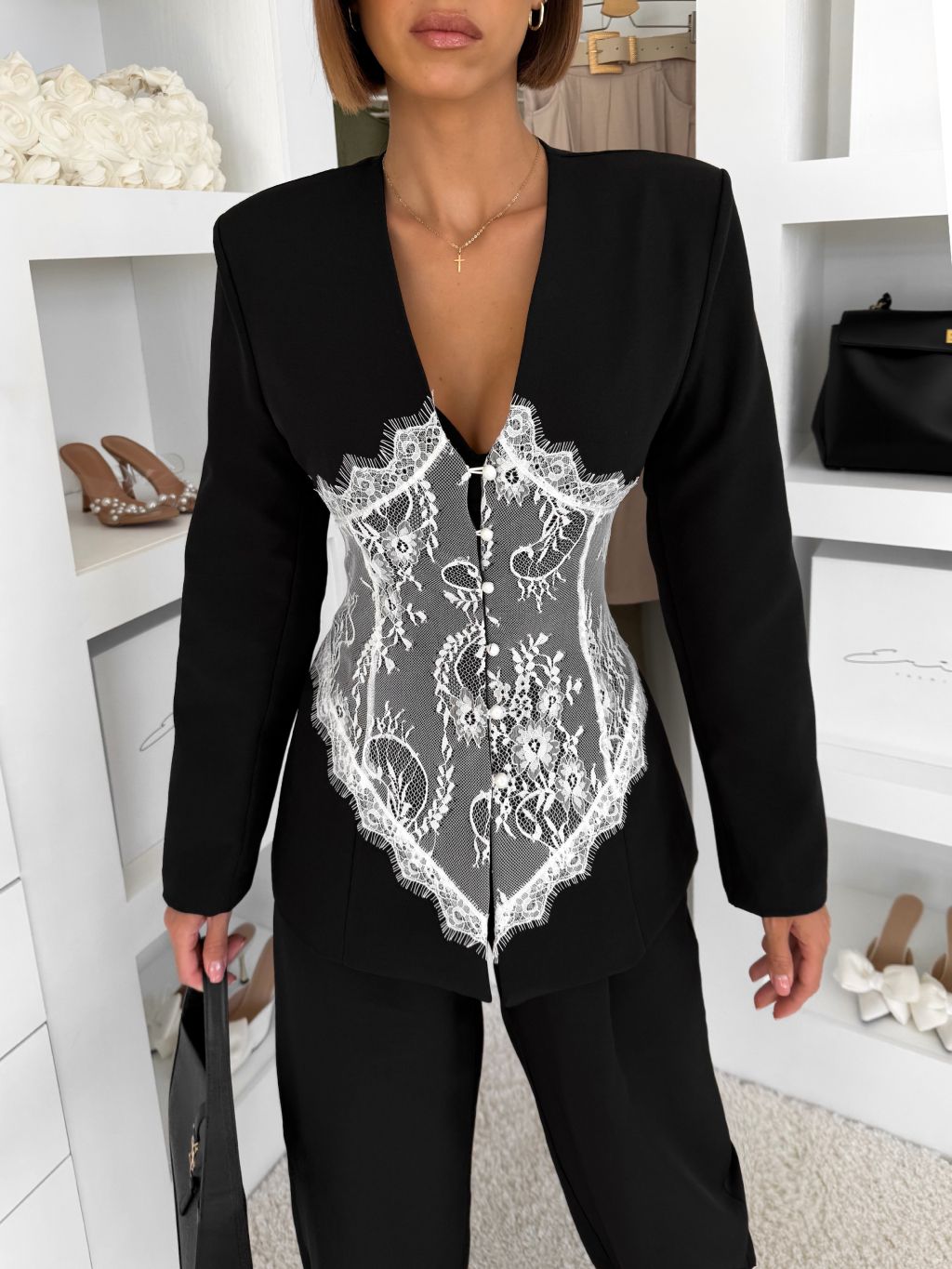 Čierne vypasované sako LINII s čipkou