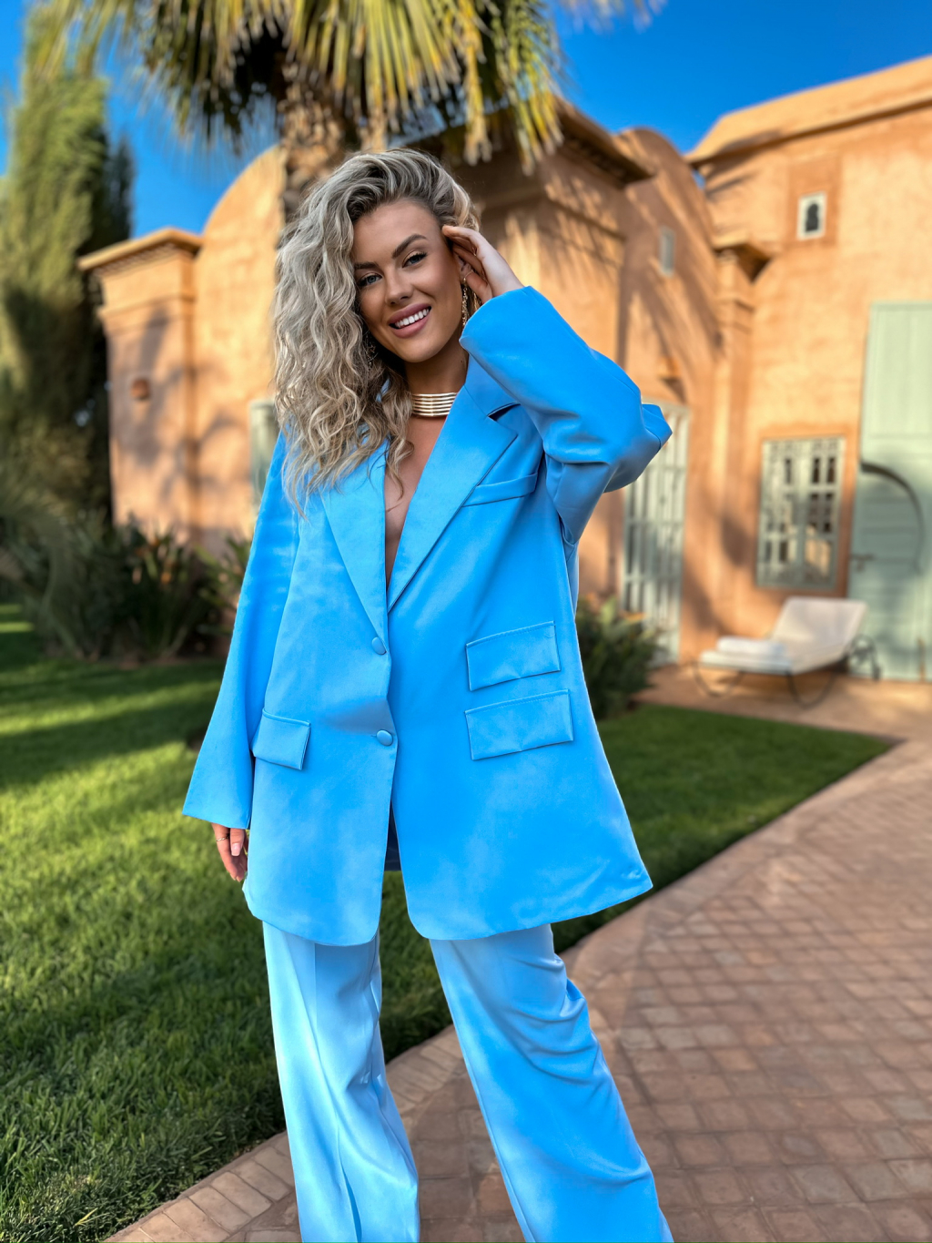 Modré oversize maxi sako NAKLOV s vypchávkami na ramenách