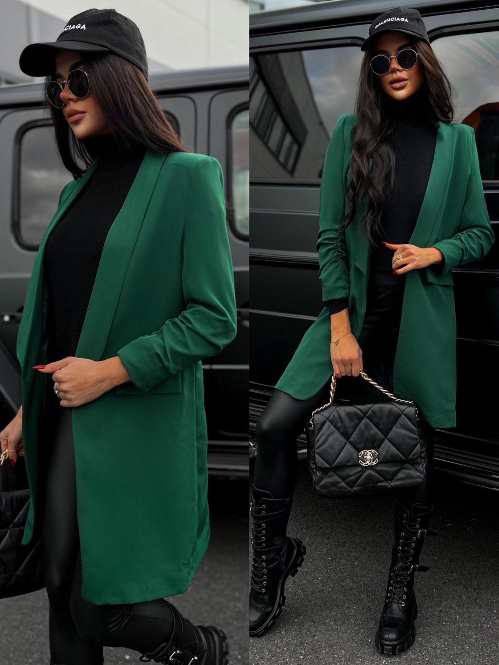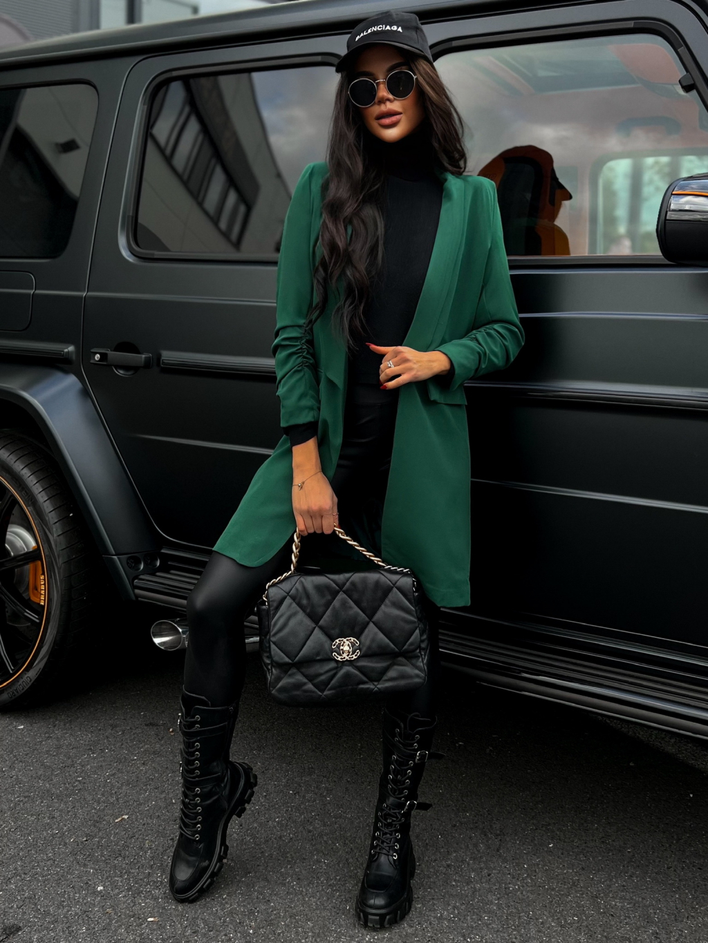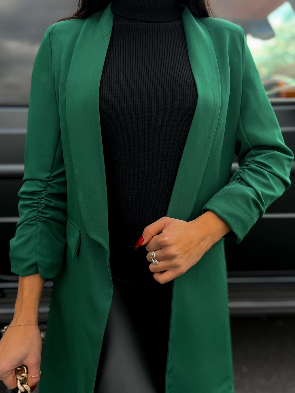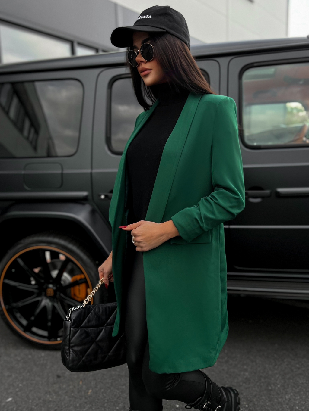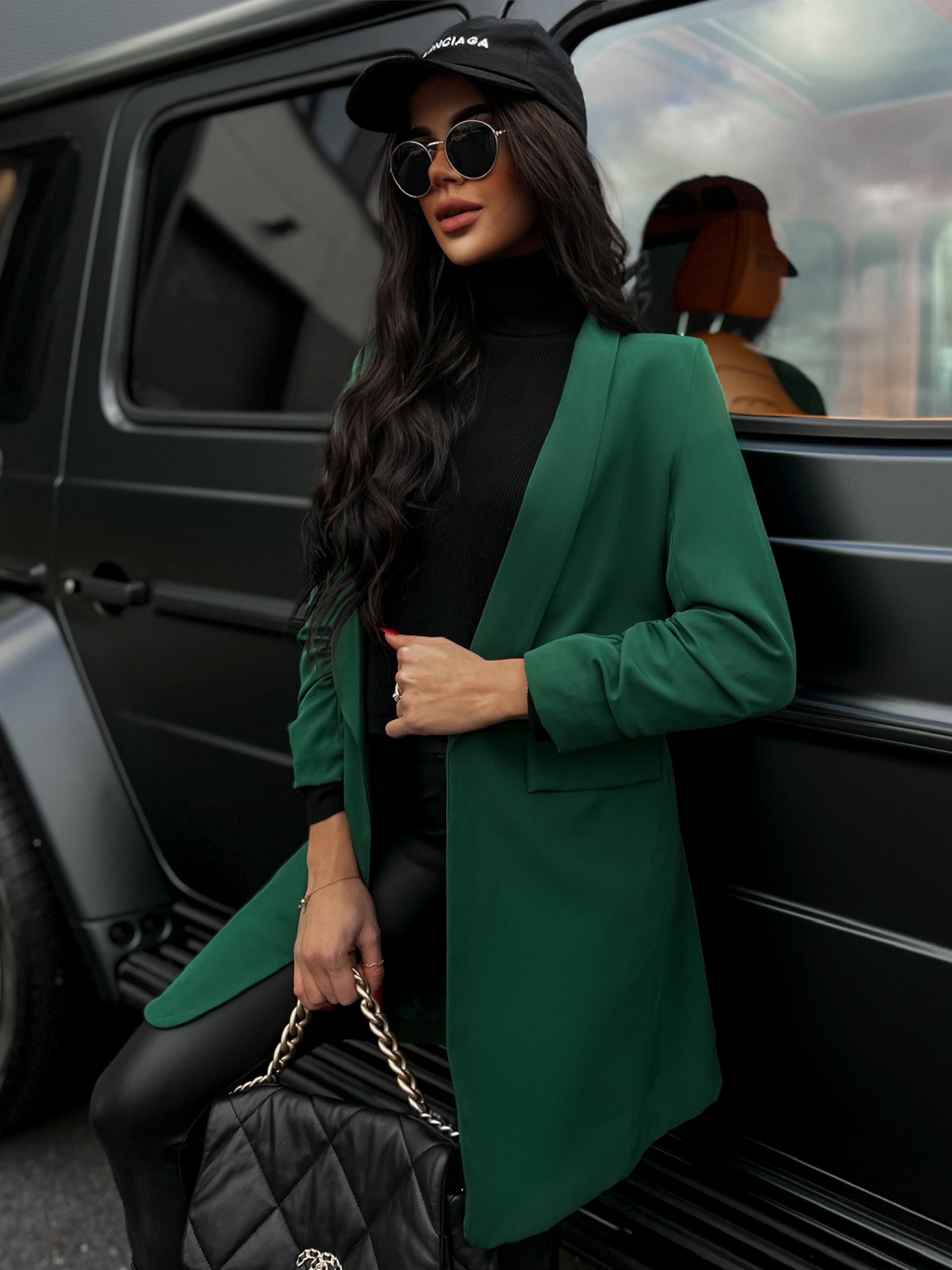 Tmavozelené elegantné sako CASTIEL otvoreného štýlu