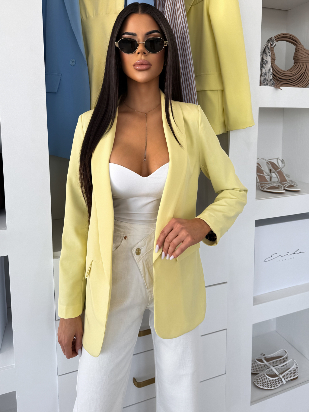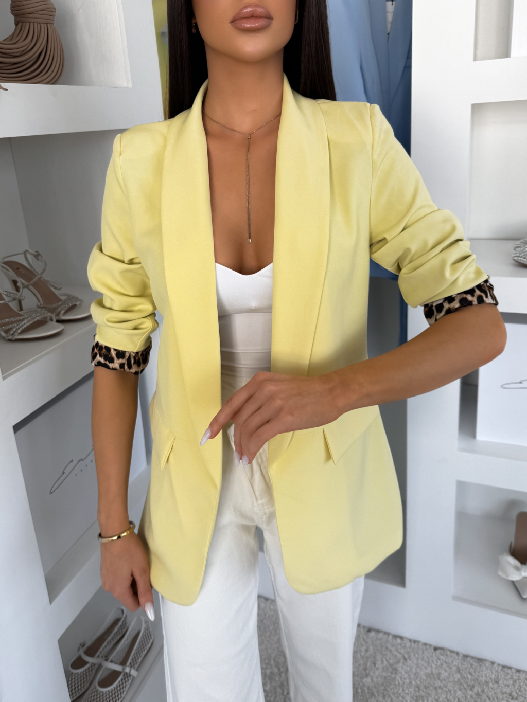Žlté štýlové sako ZAFINA s leopardným vzorom