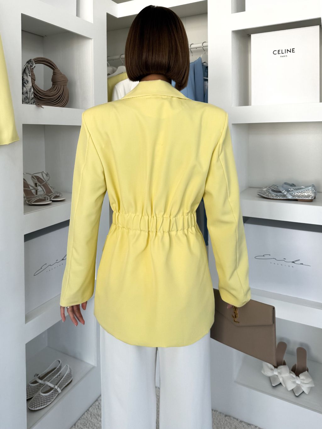 Žlté vypasované elegantné sako ROVENA s ozdobou