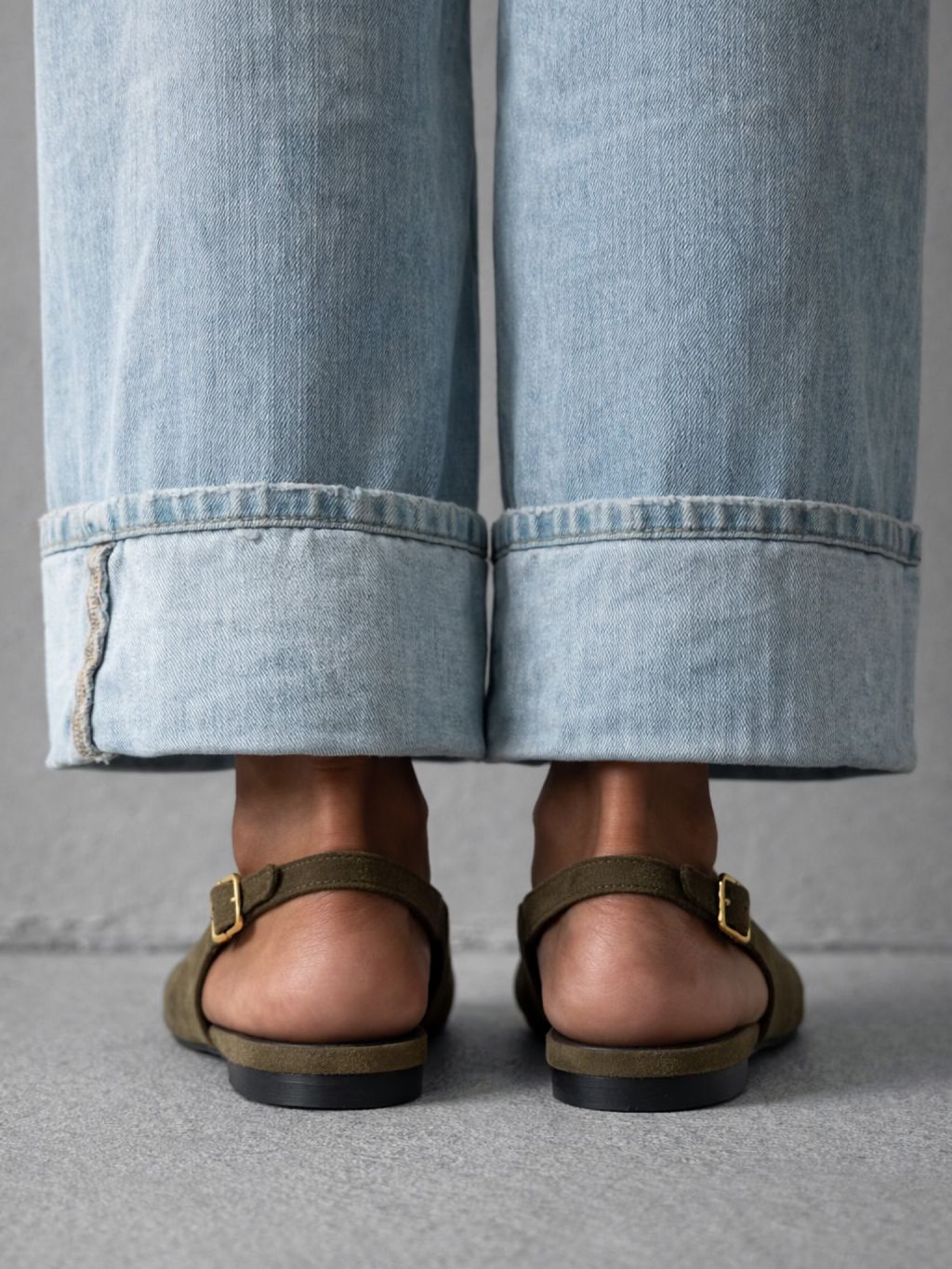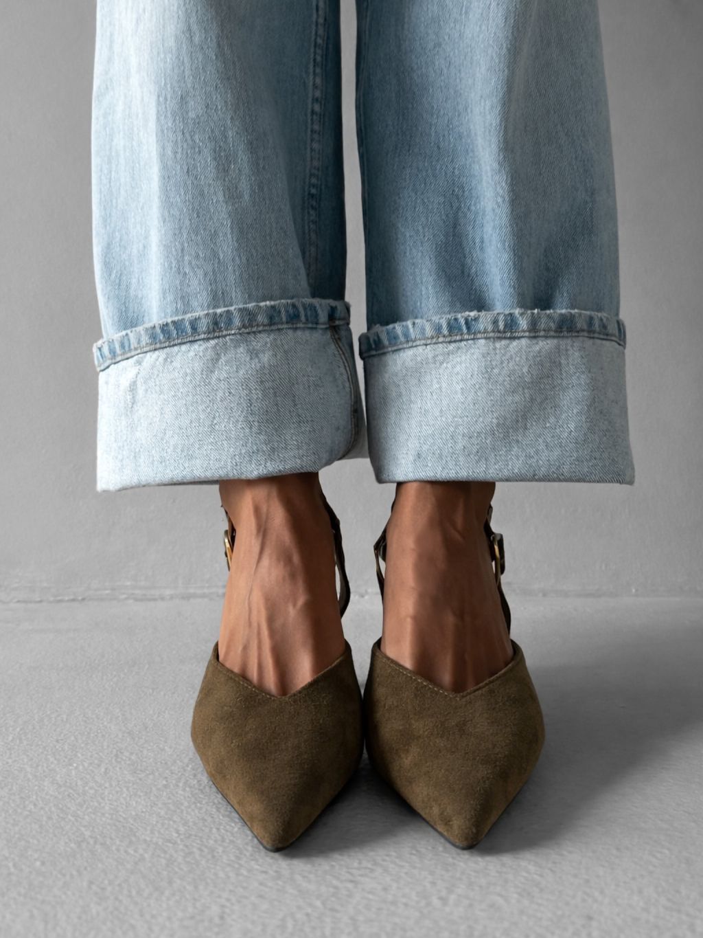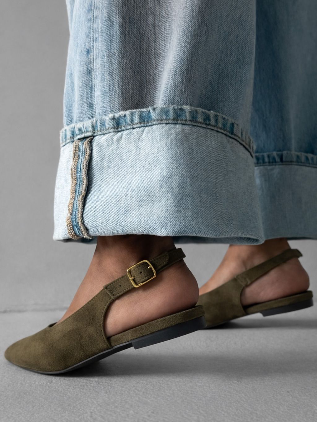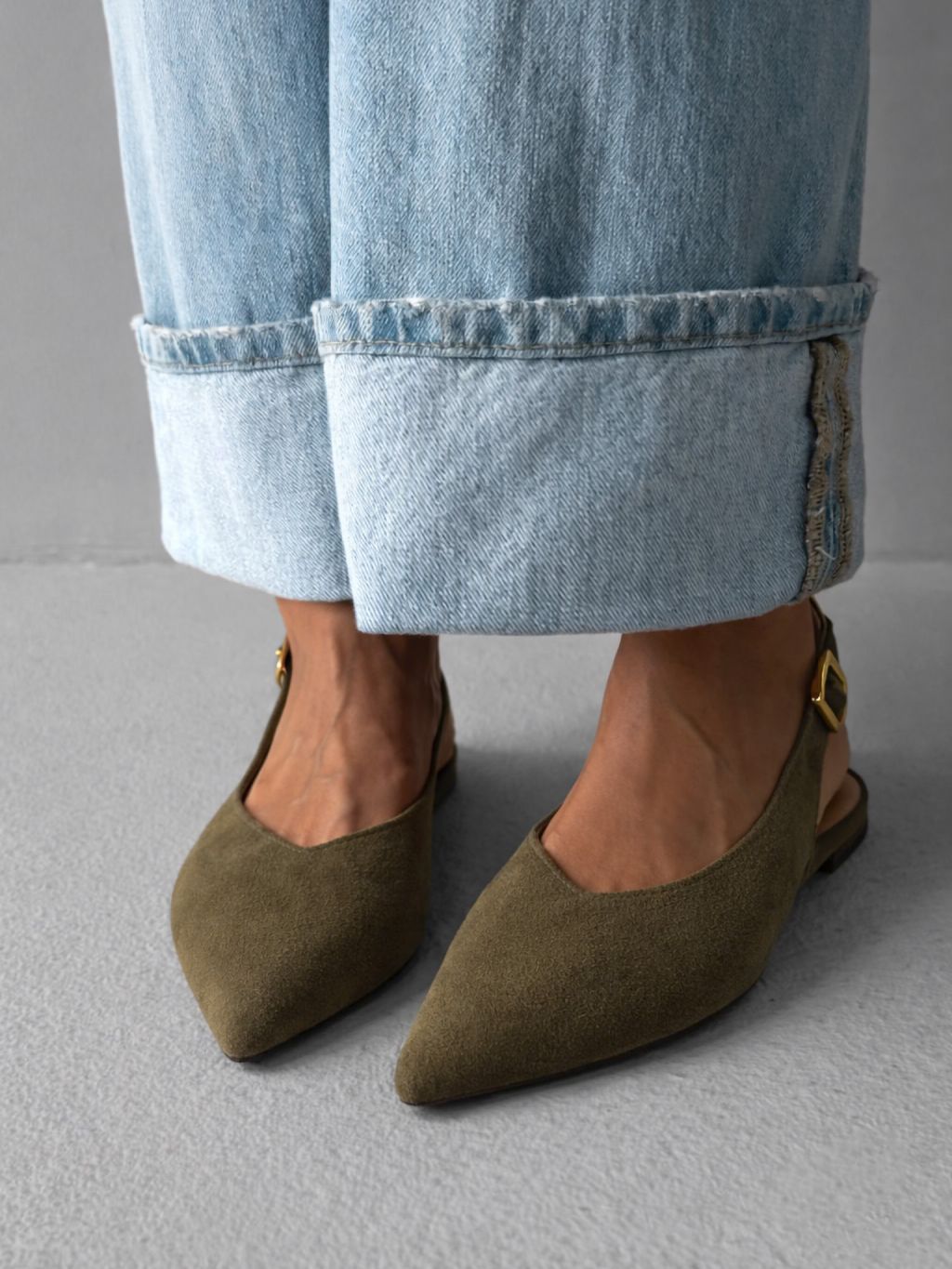 Kaki semišové nazúvacie baleríny GENYRA s odkrytou pätou