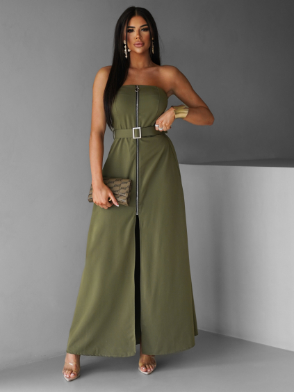 Khaki dlhé mušelínové letné šaty SILVERA