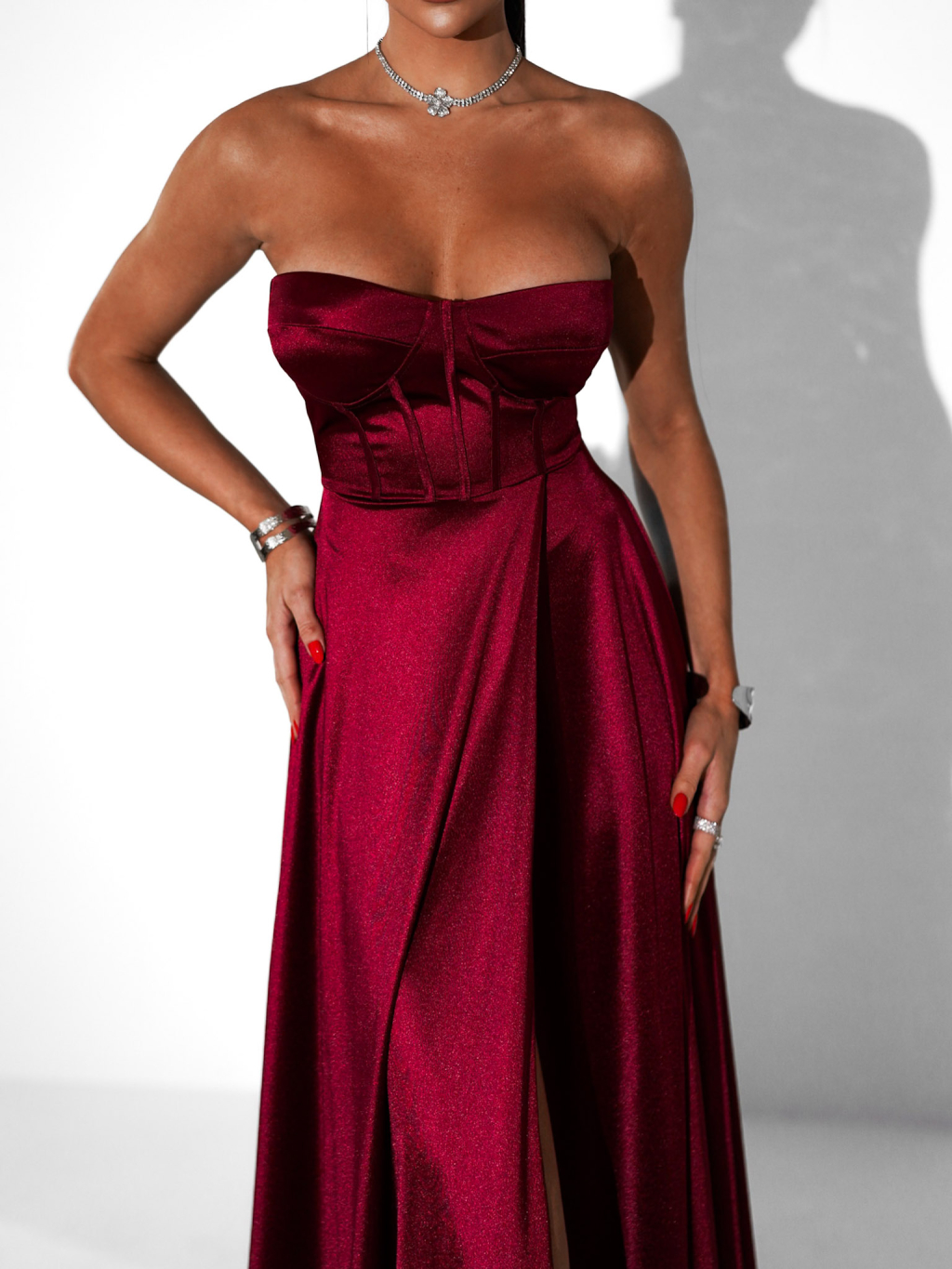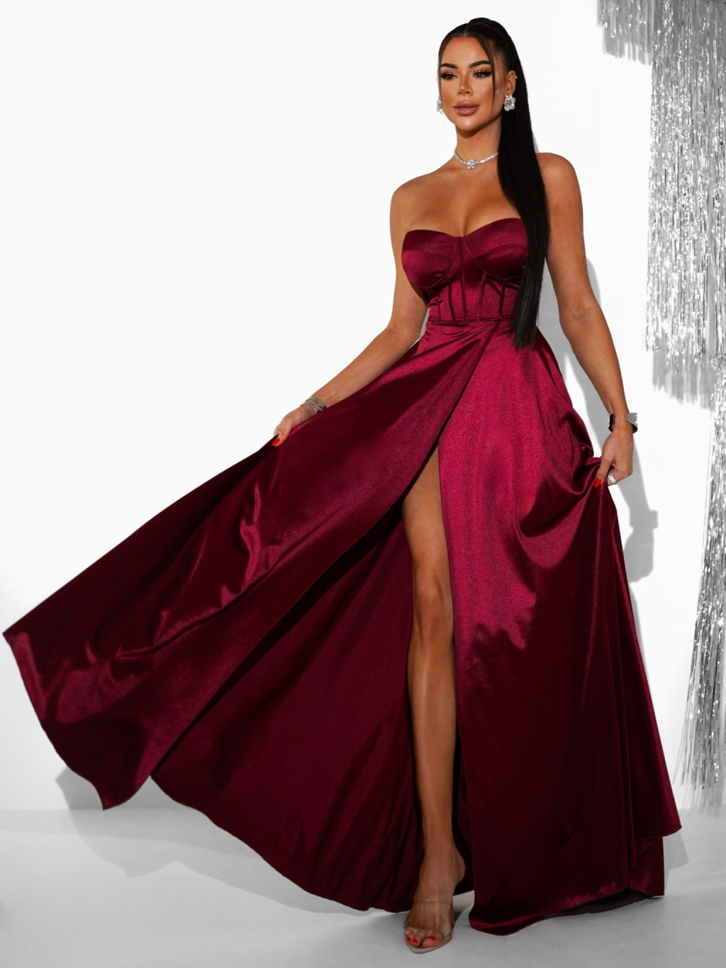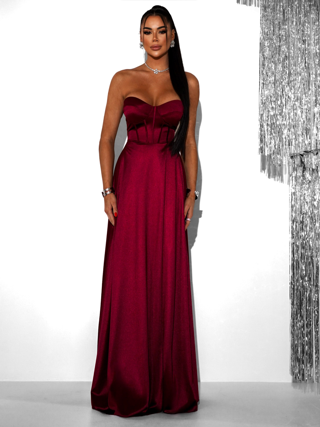 Bordové saténové dlhé šaty GYBRAL s korzetom