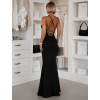 Čierne dlhé saténové šaty ERIKAL s rázporkom a šnurovaním