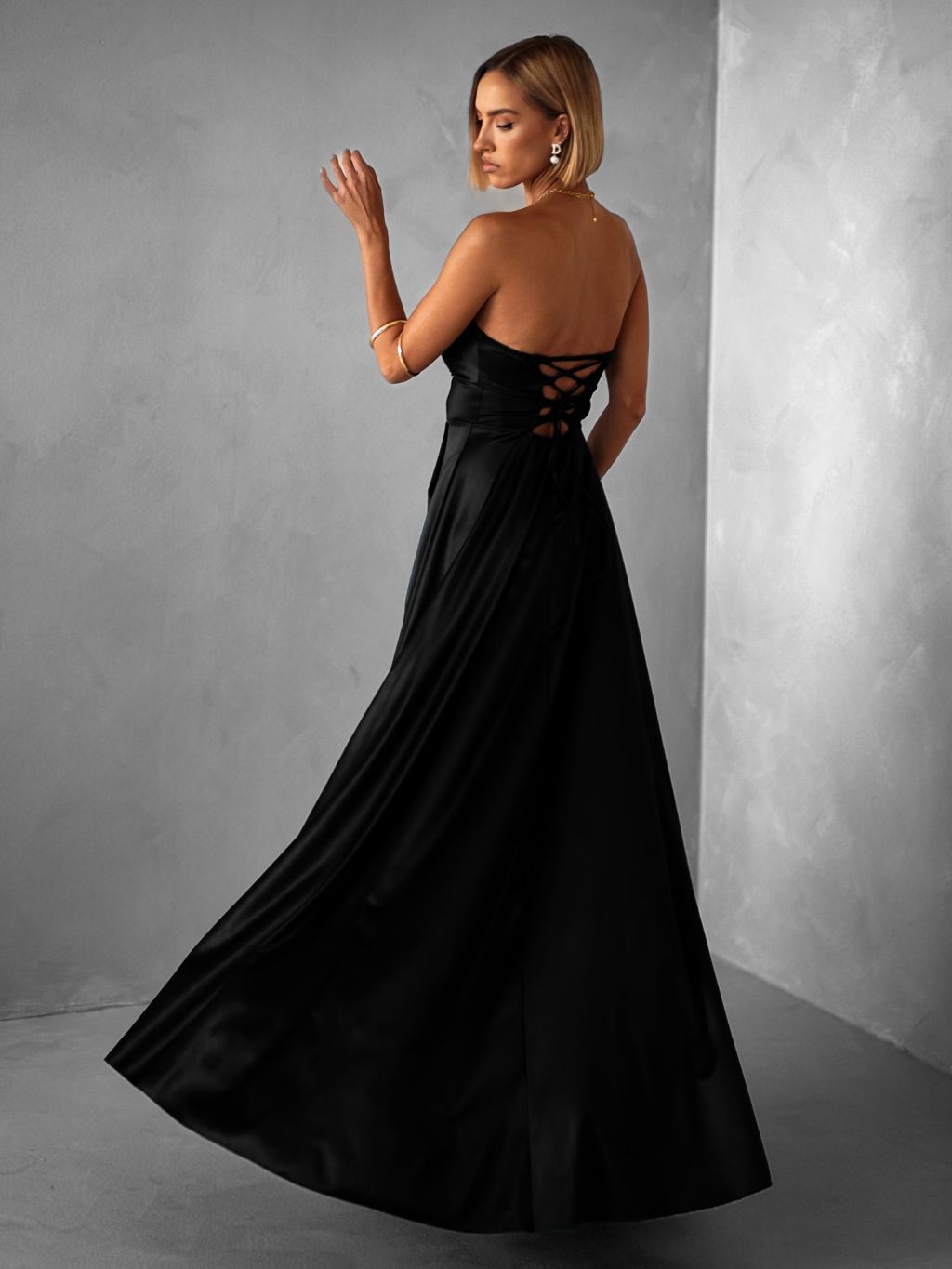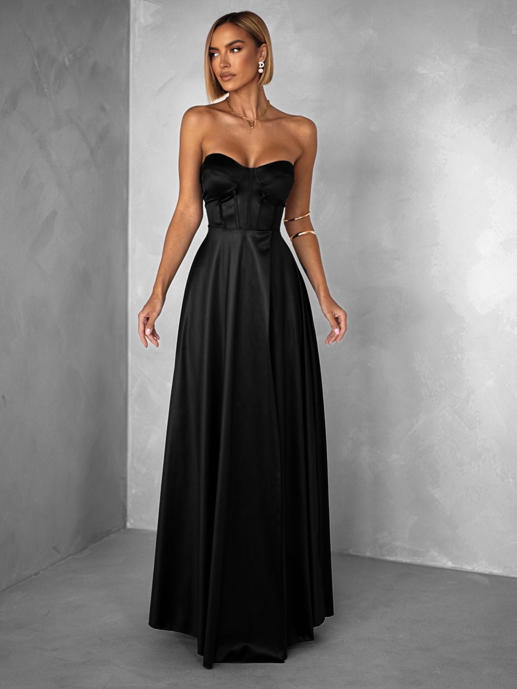 Čierne dlhé saténové šaty GYBRAL s korzetom