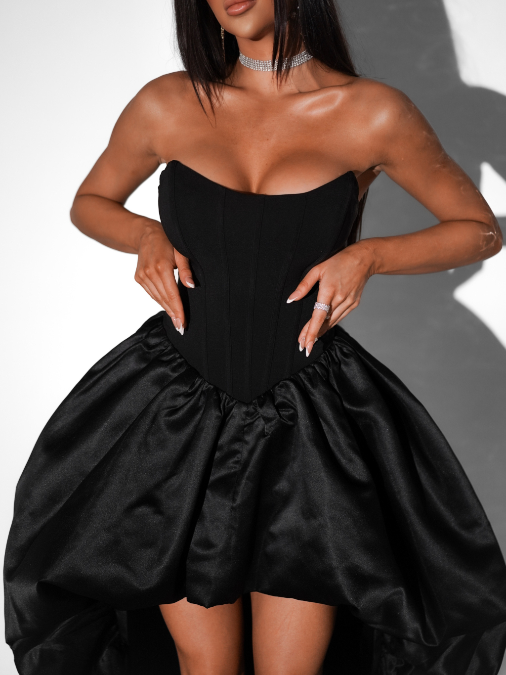 Čierne korzetové plesové šaty ASEL s balónovou sukňou