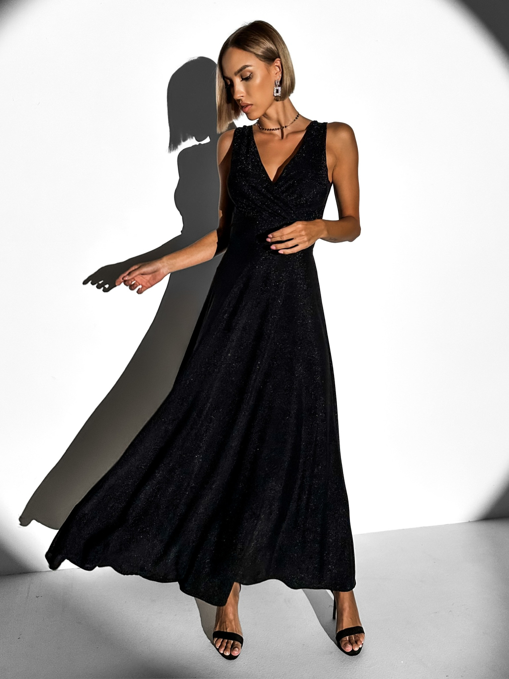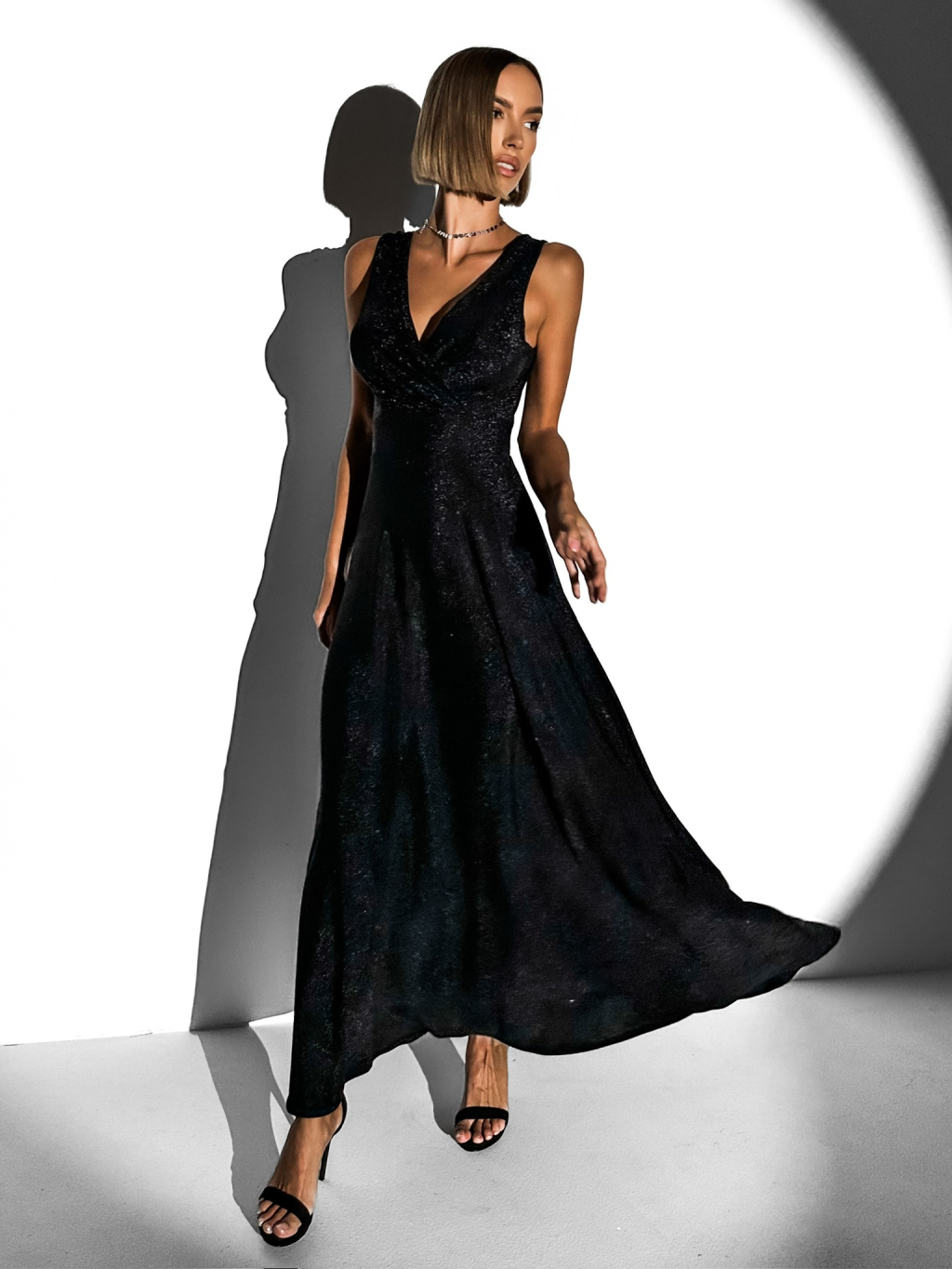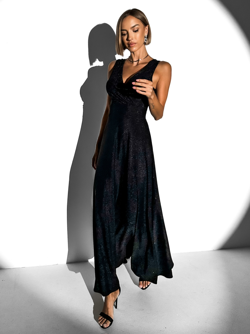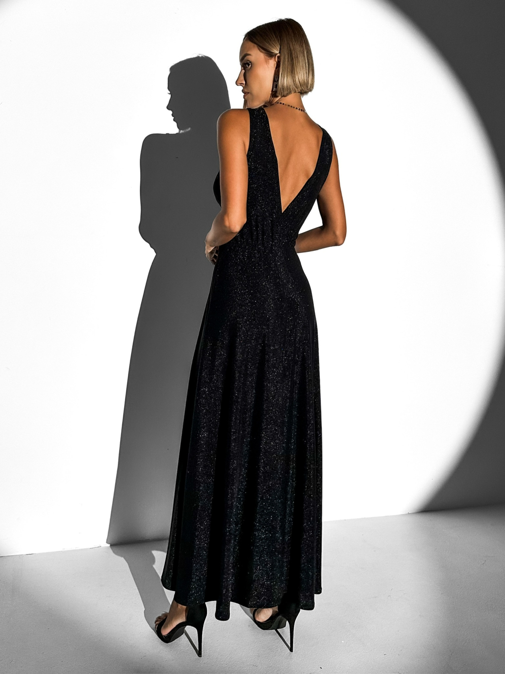 Čierne trblietavé dlhé elegantné šaty DUNJA