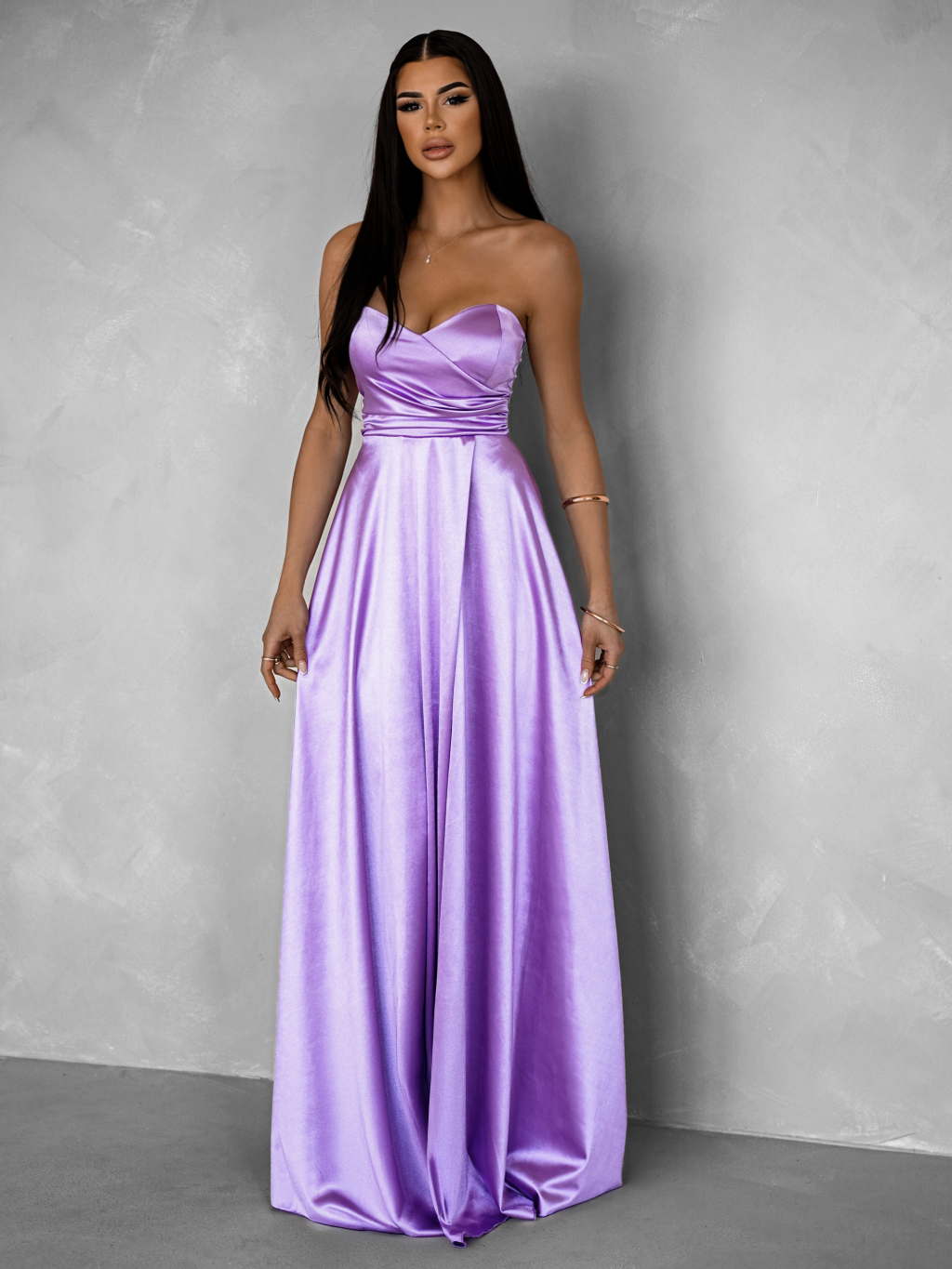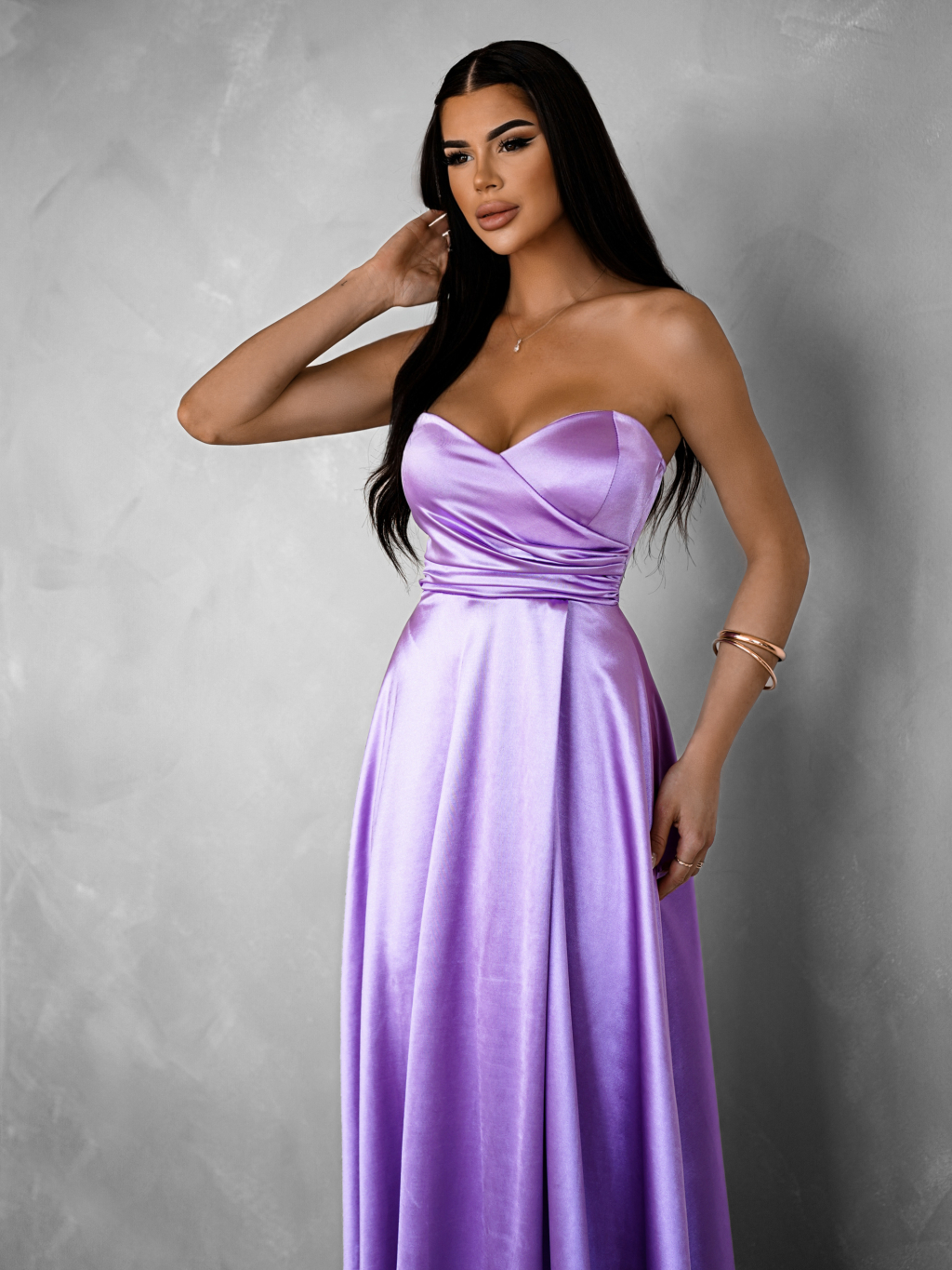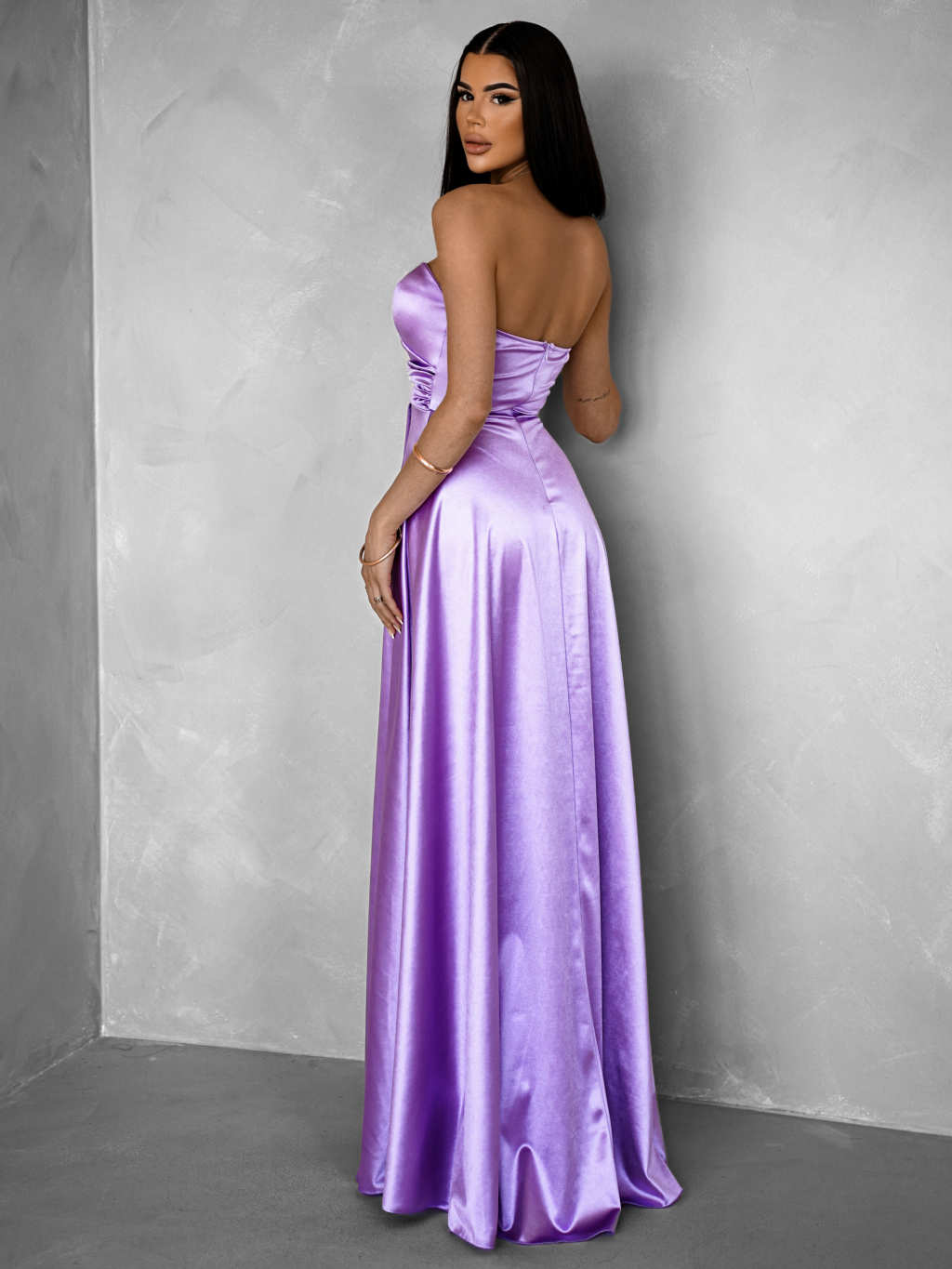 Fialové spoločenské saténové korzetové šaty SYCHAEUS