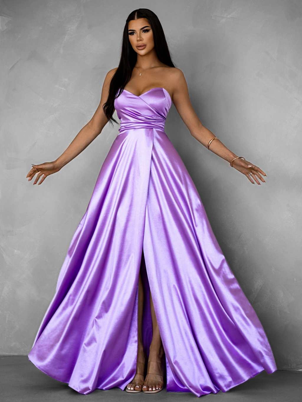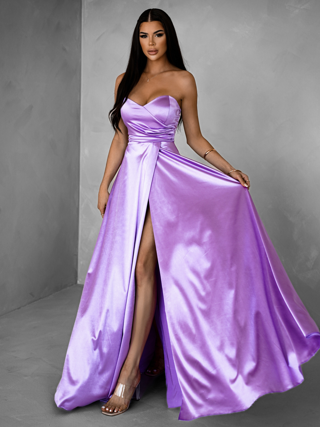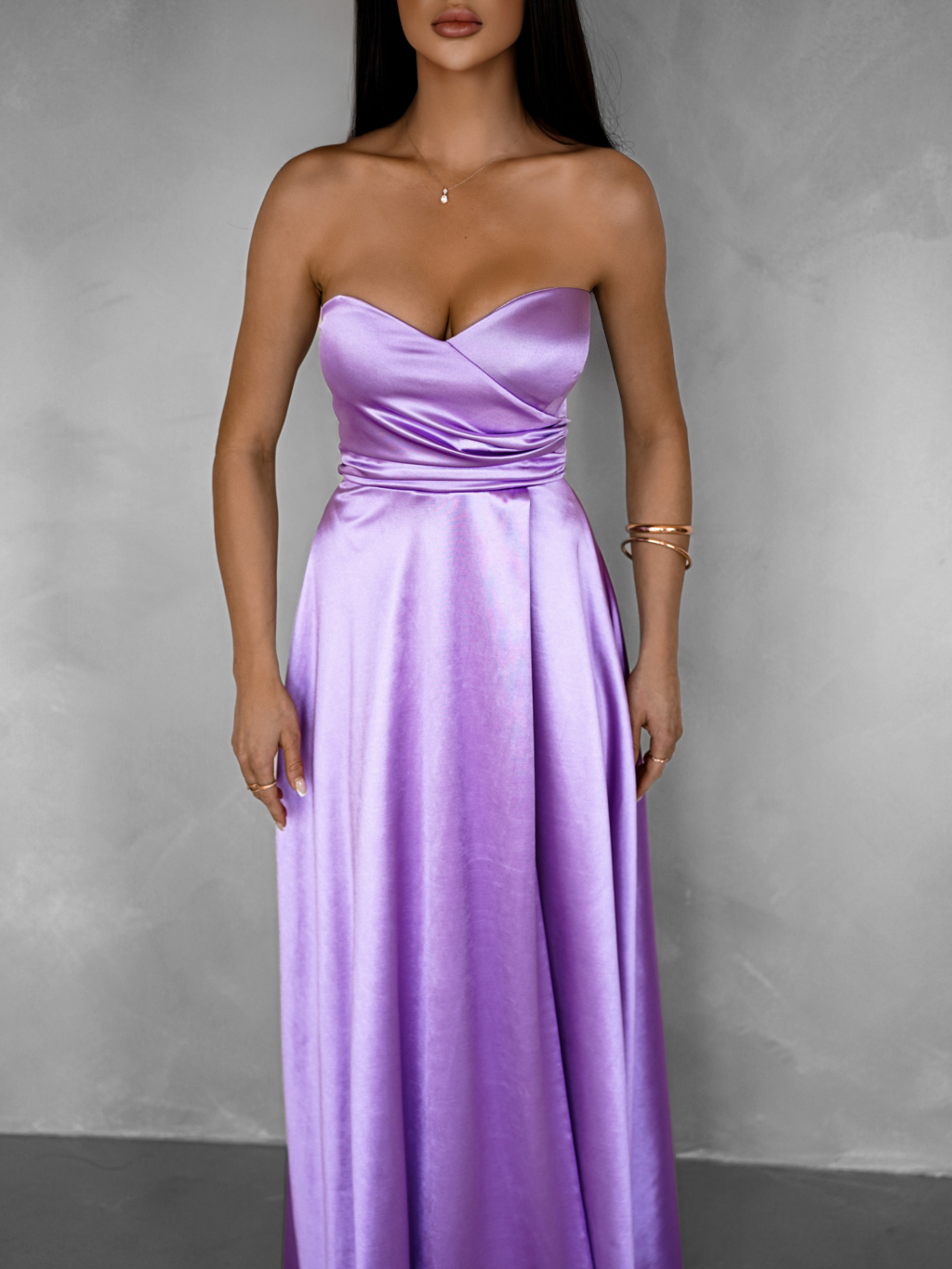 Fialové spoločenské saténové korzetové šaty SYCHAEUS