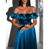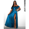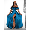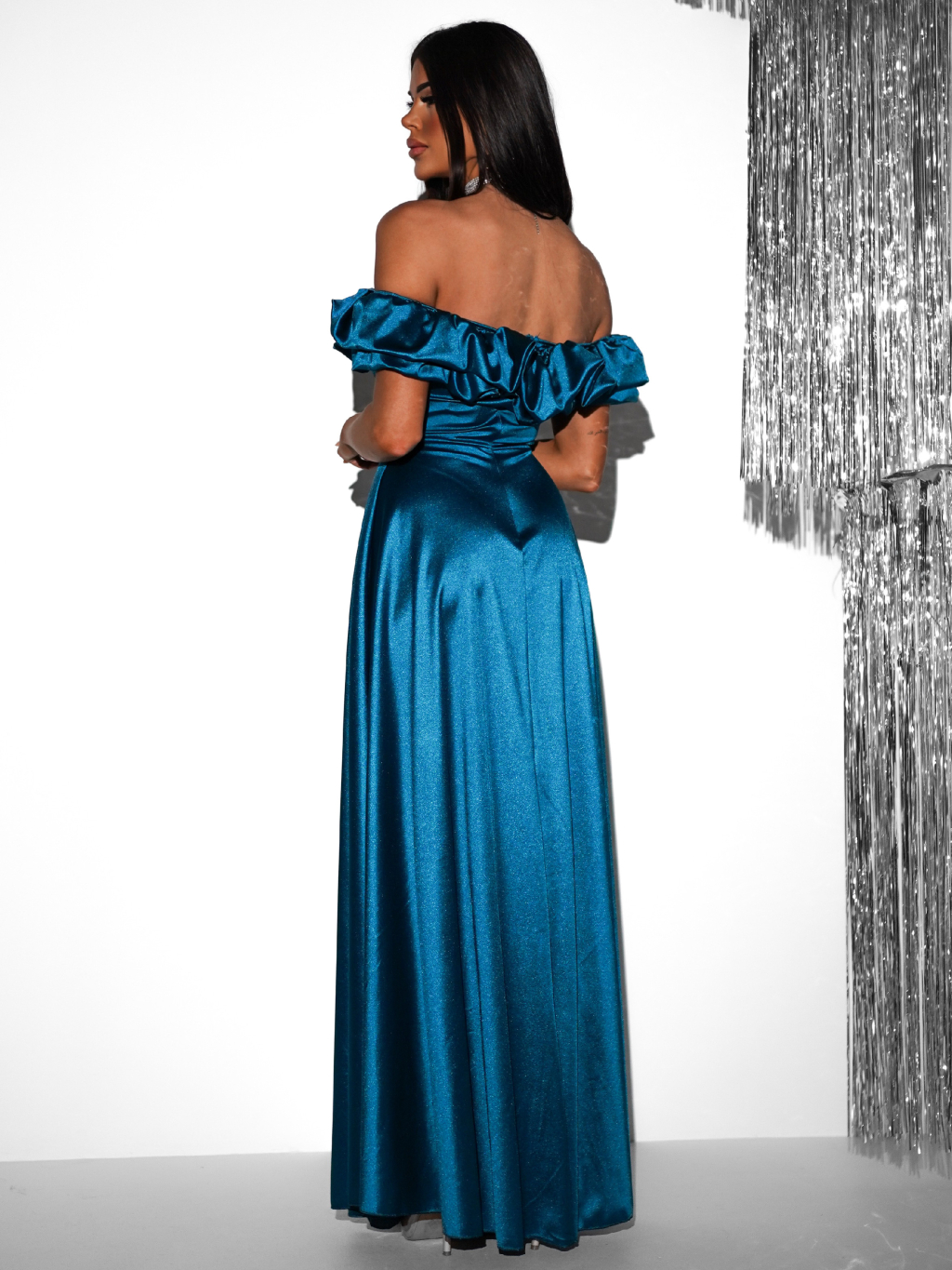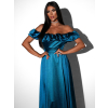 Petrolejové večerné saténové dlhé šaty EBOLIA