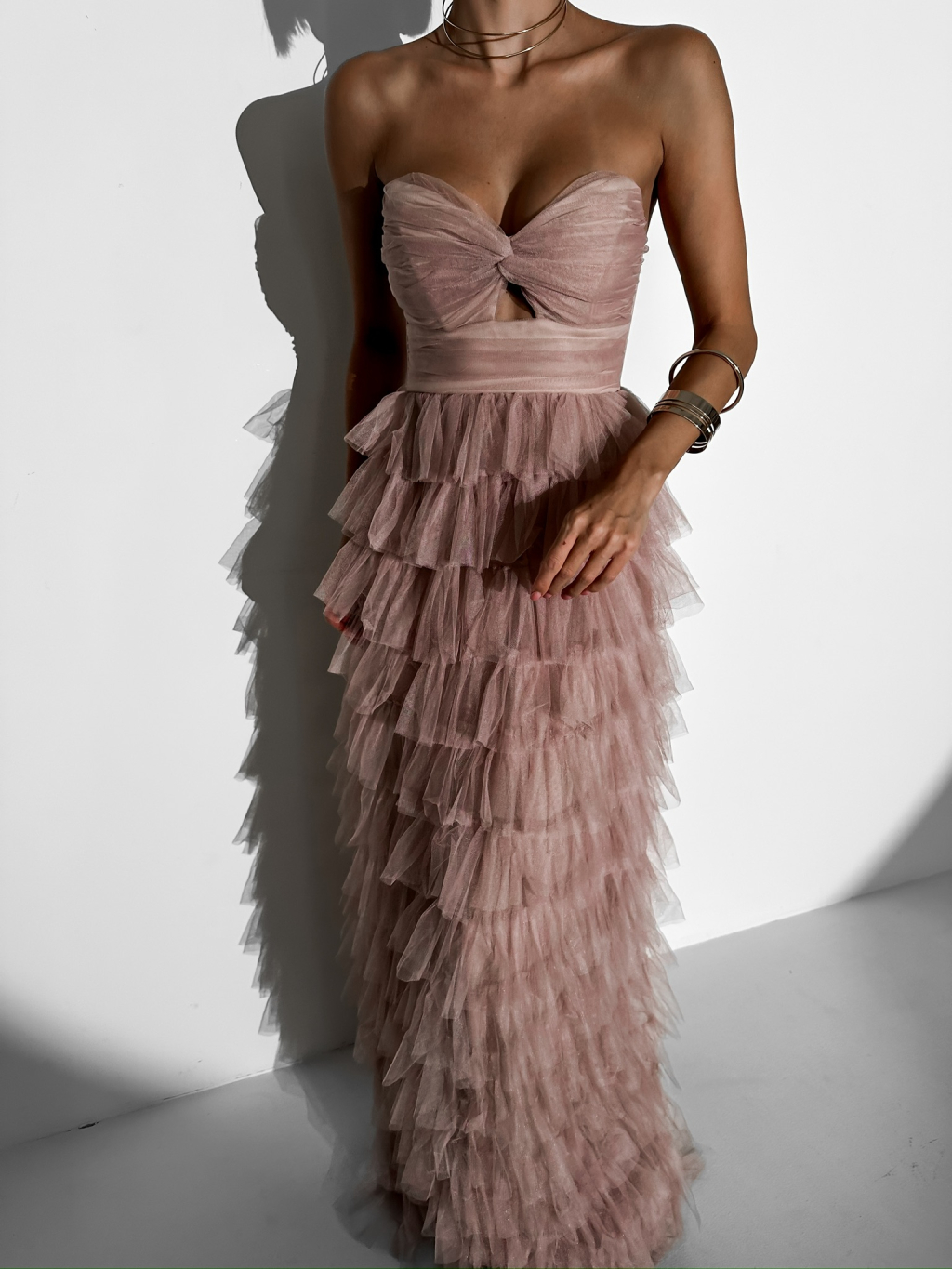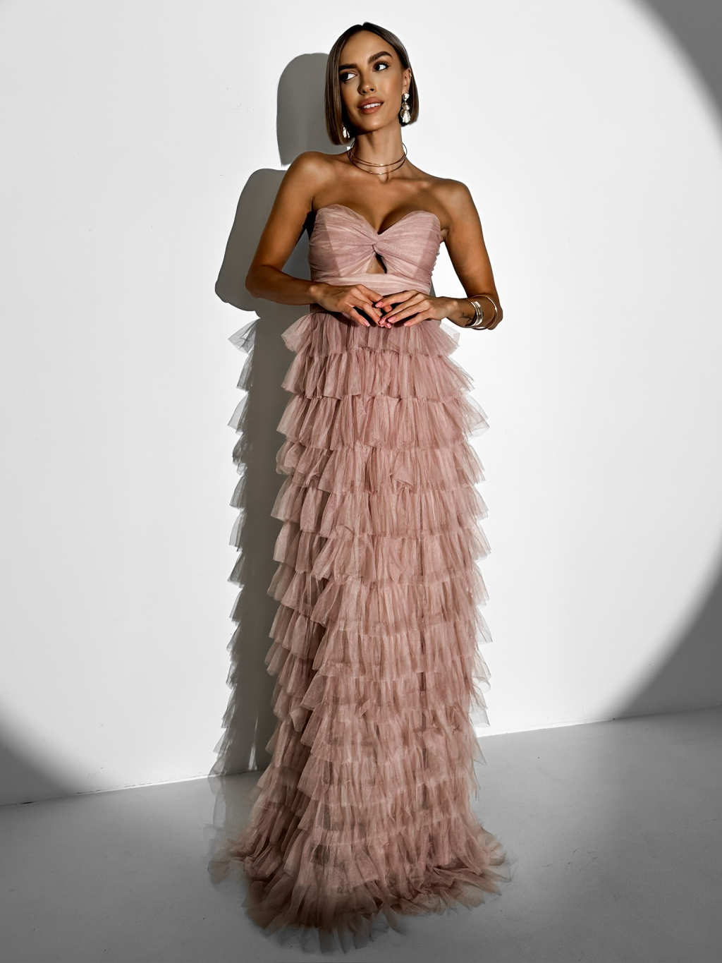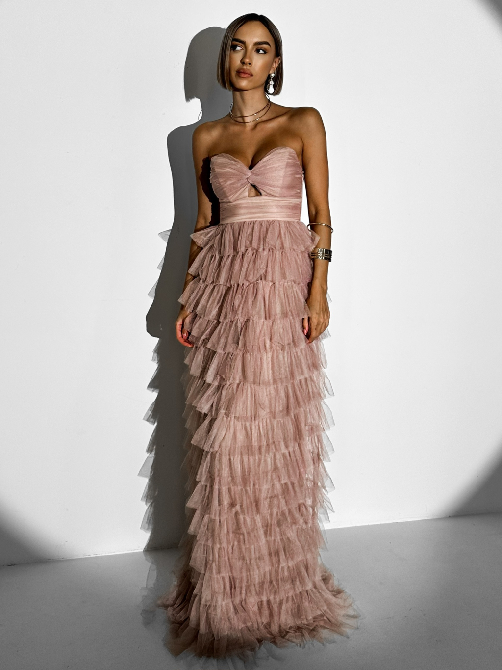 Staroružové plesové tylové šaty BRUNHIL s volánikmi