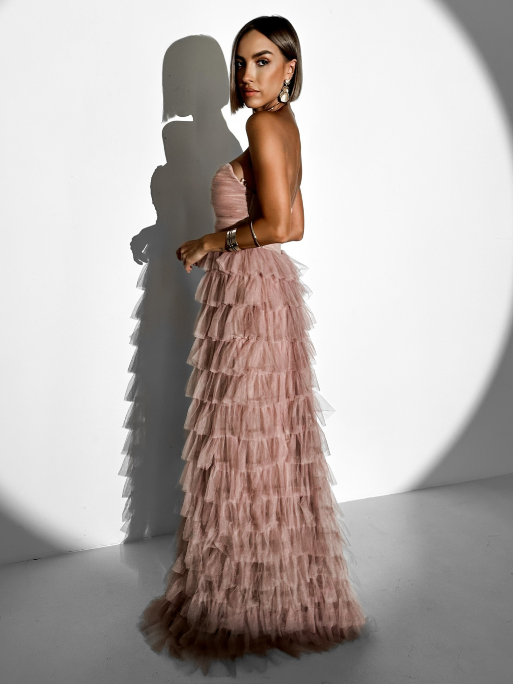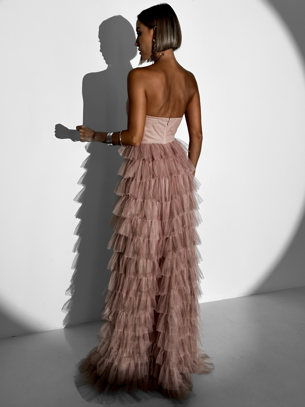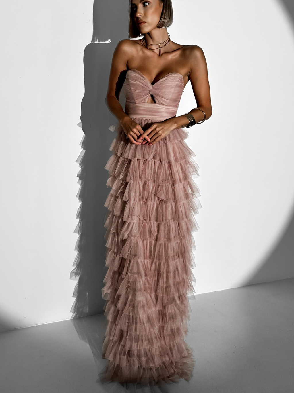 Staroružové plesové tylové šaty BRUNHIL s volánikmi