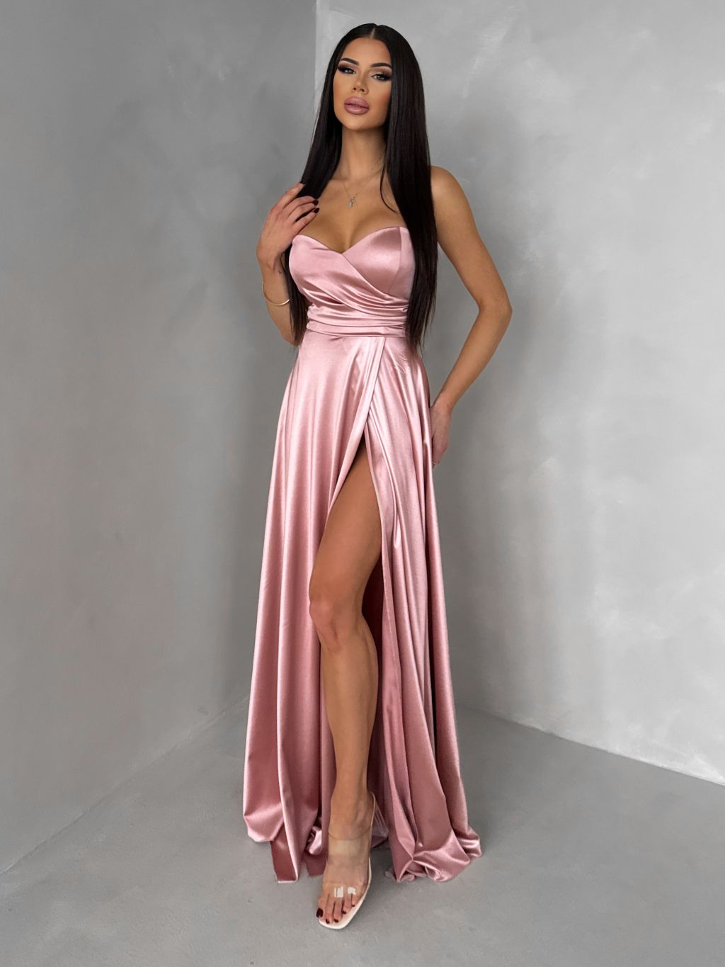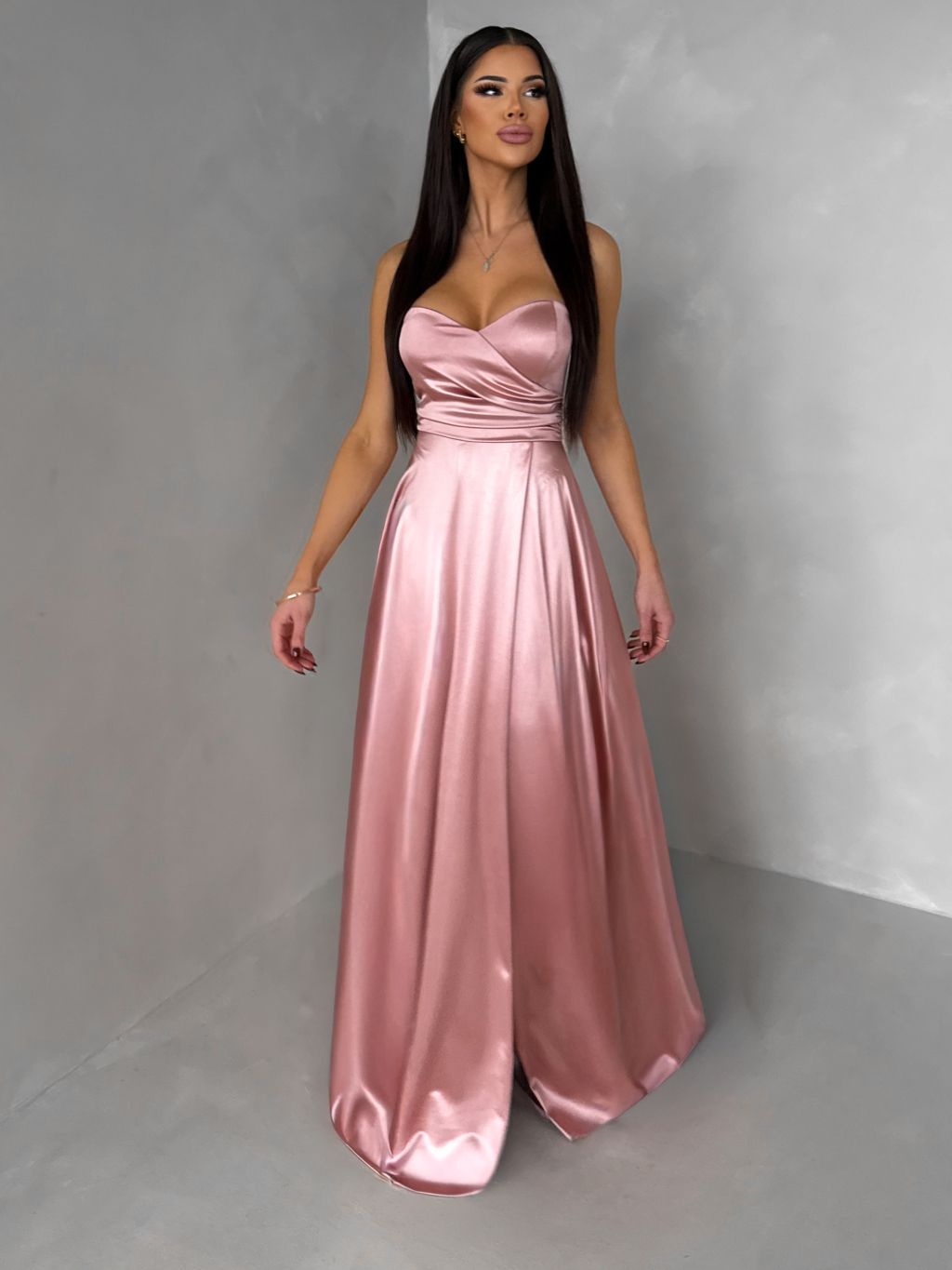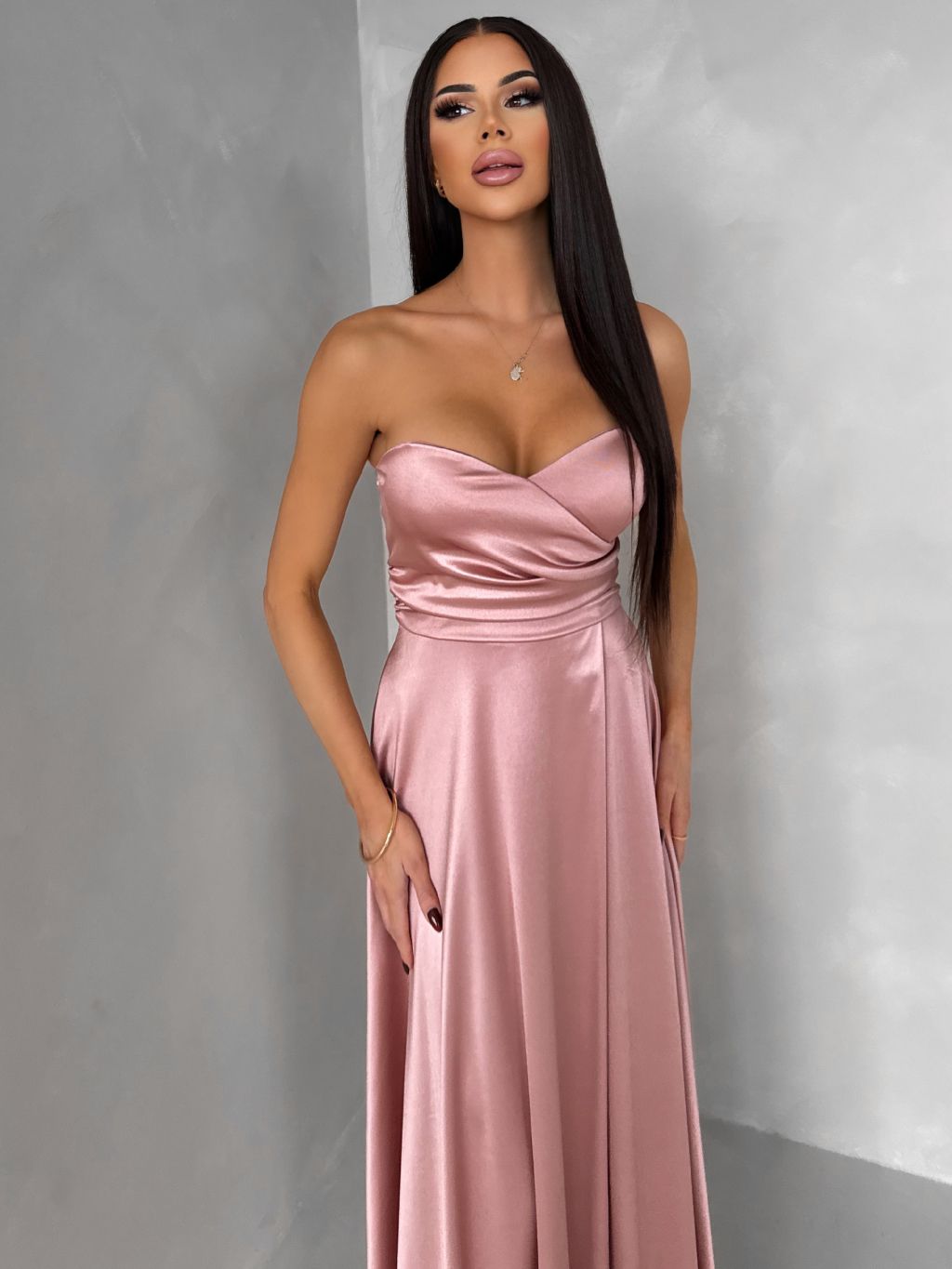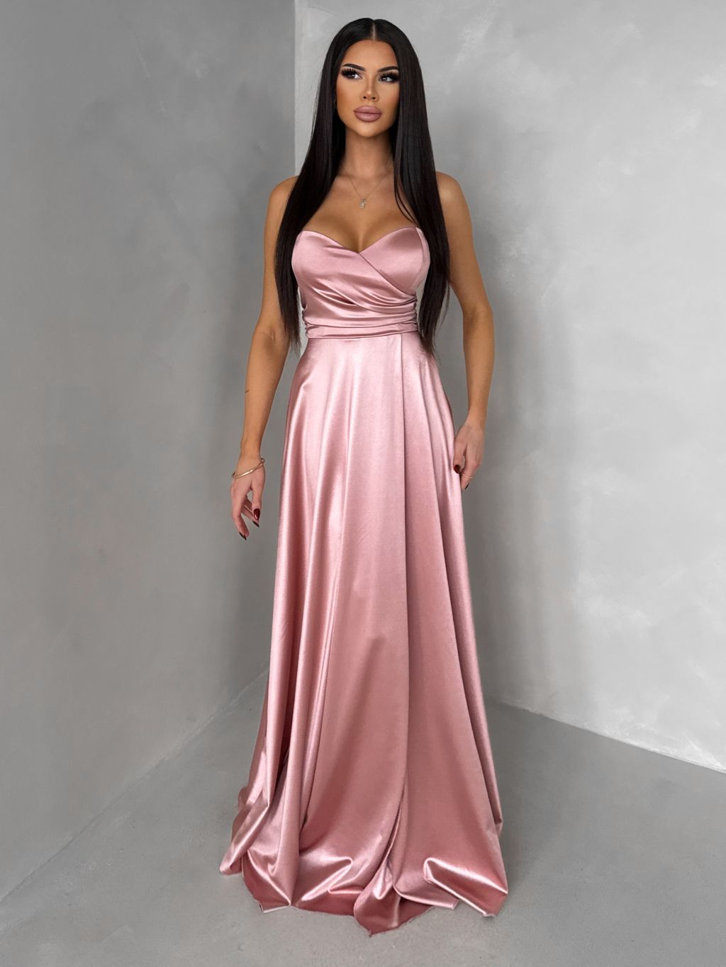 Staroružové spoločenské dlhé šaty SYCHAEUS bez ramienok