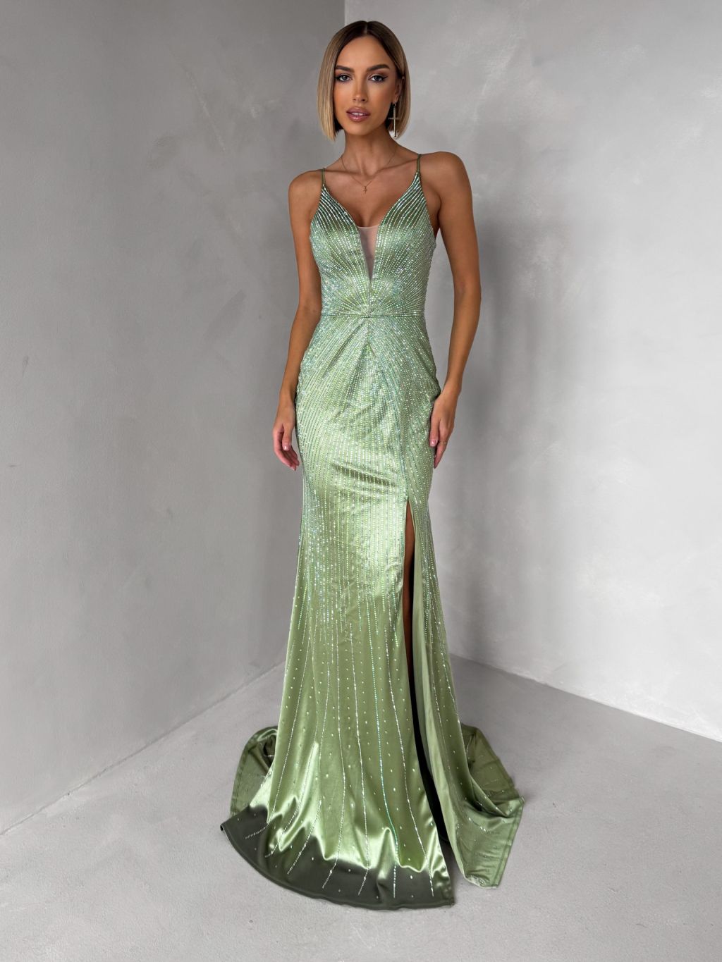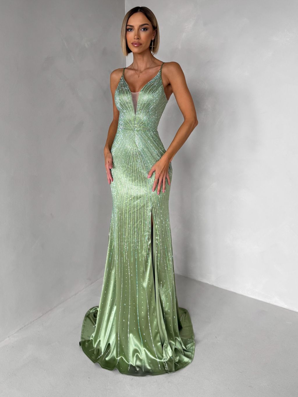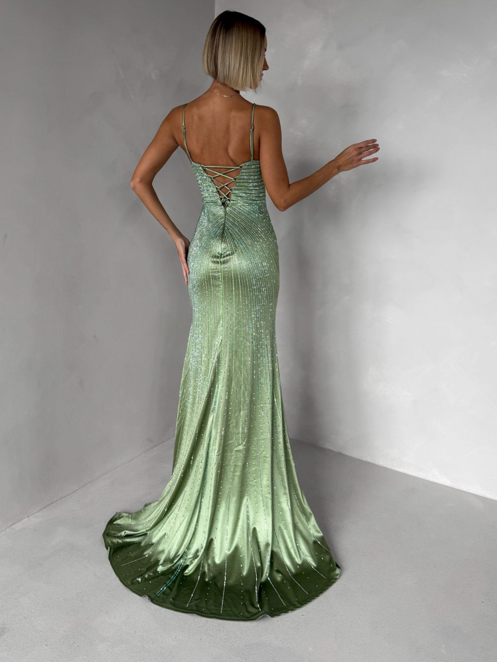 Zelenkavé plesové trblietavé luxusné šaty RAVELLE