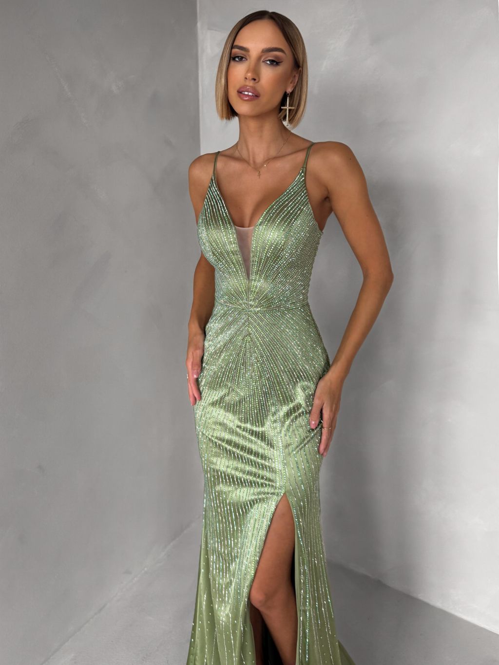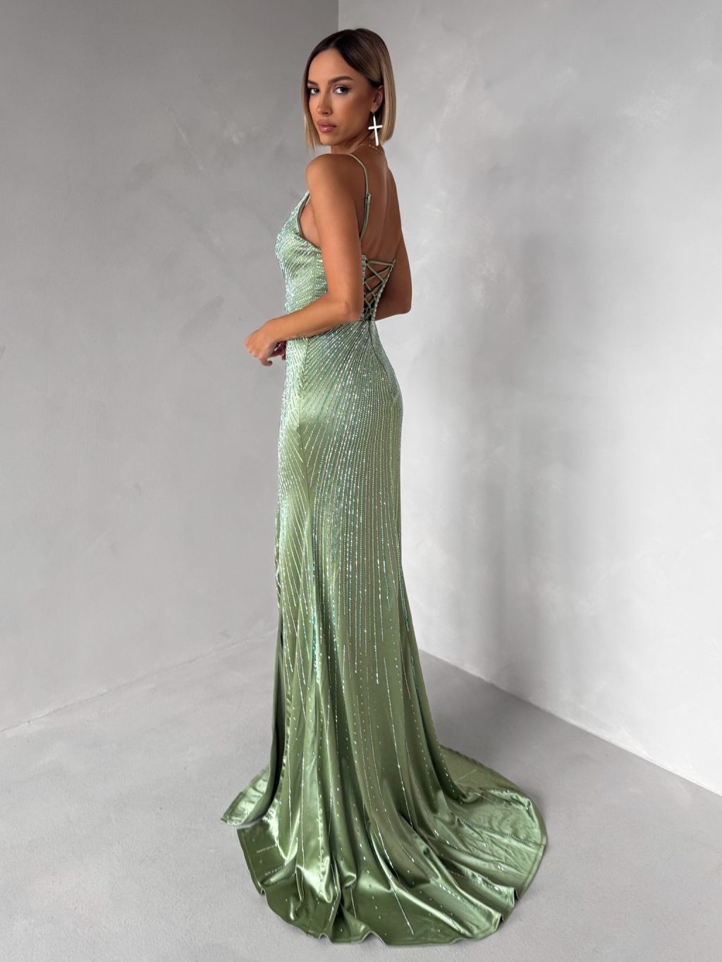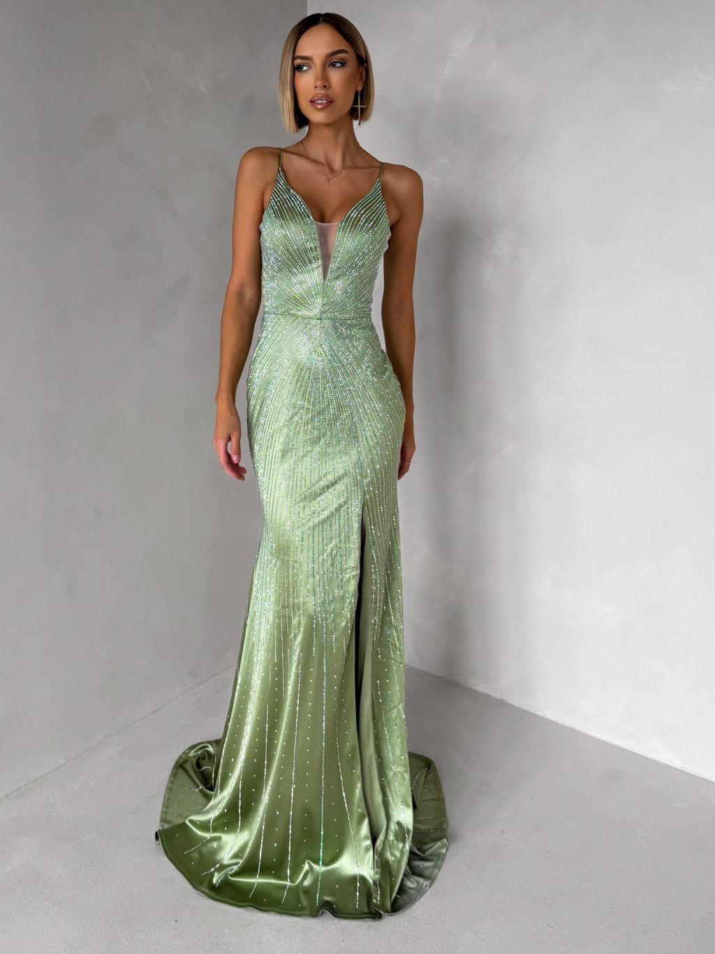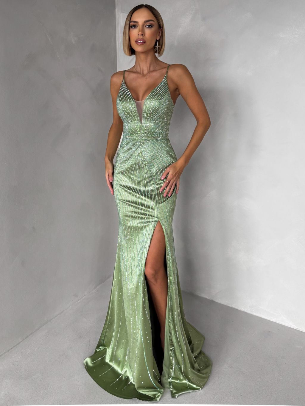 Zelenkavé plesové trblietavé luxusné šaty RAVELLE
