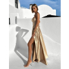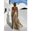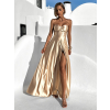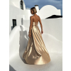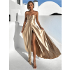 Zlaté saténové dlhé šaty GYBRAL s korzetema rázporkom