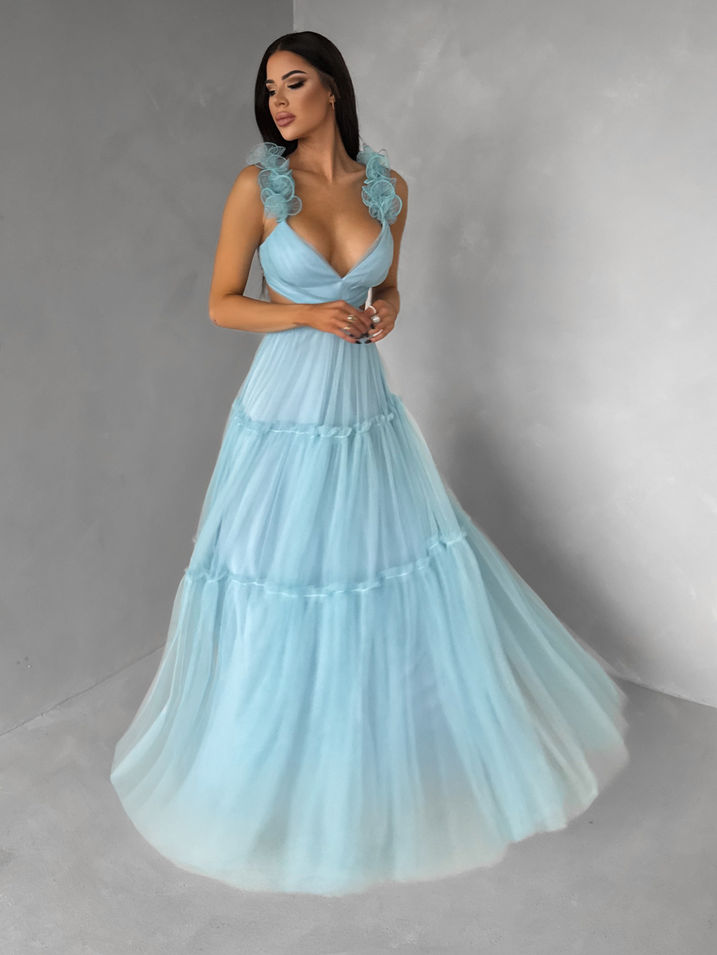 Mentolové tylové plesové šaty NALASI s prestrihmi