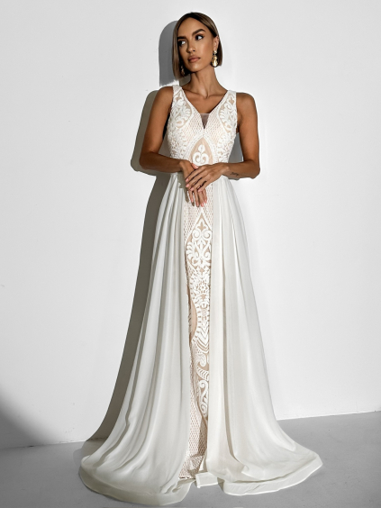 Krémové večerné dlhé šaty ARMYTE s vlečkou
