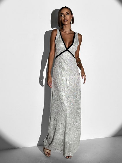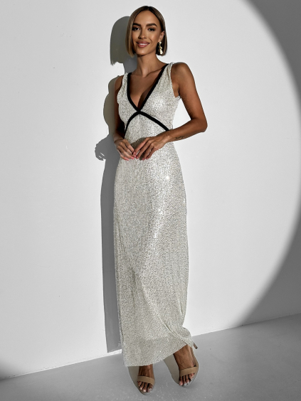 Zlaté plesové dlhé trblietavé šaty LAJSA s výstrihom