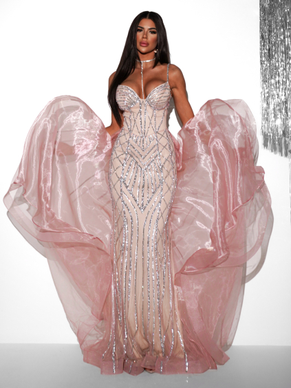 Svetloružové saténové dlhé spoločenské šaty PRIMROSE