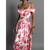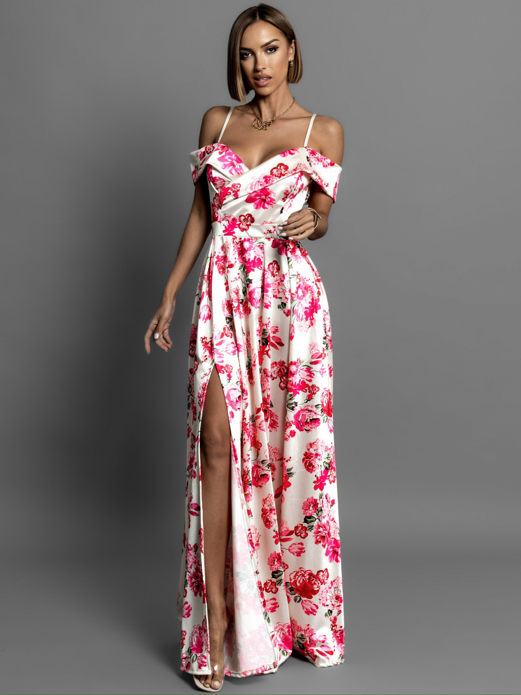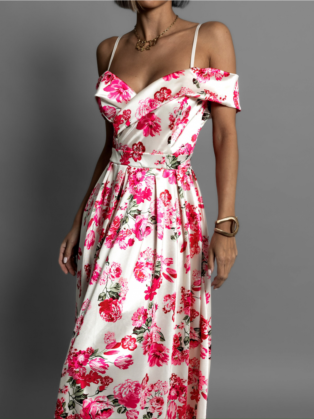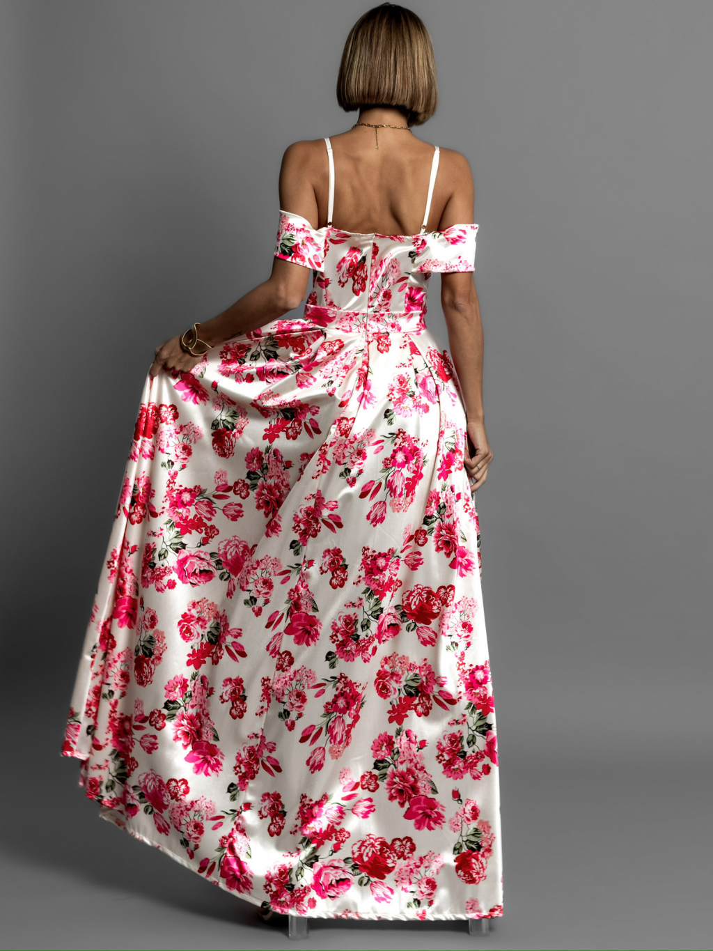 Krémové dlhé saténové kvetinové šaty MAXWELL