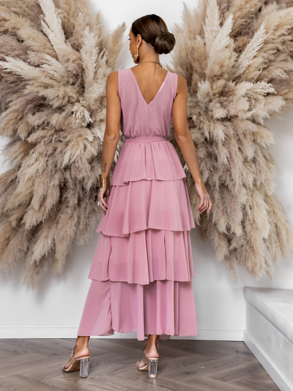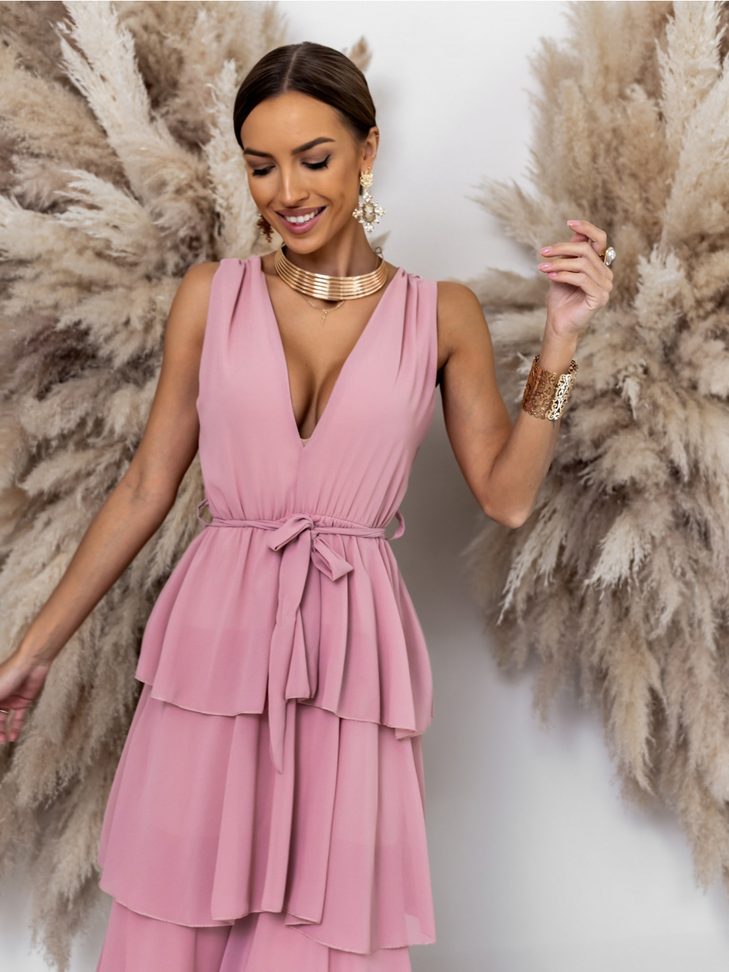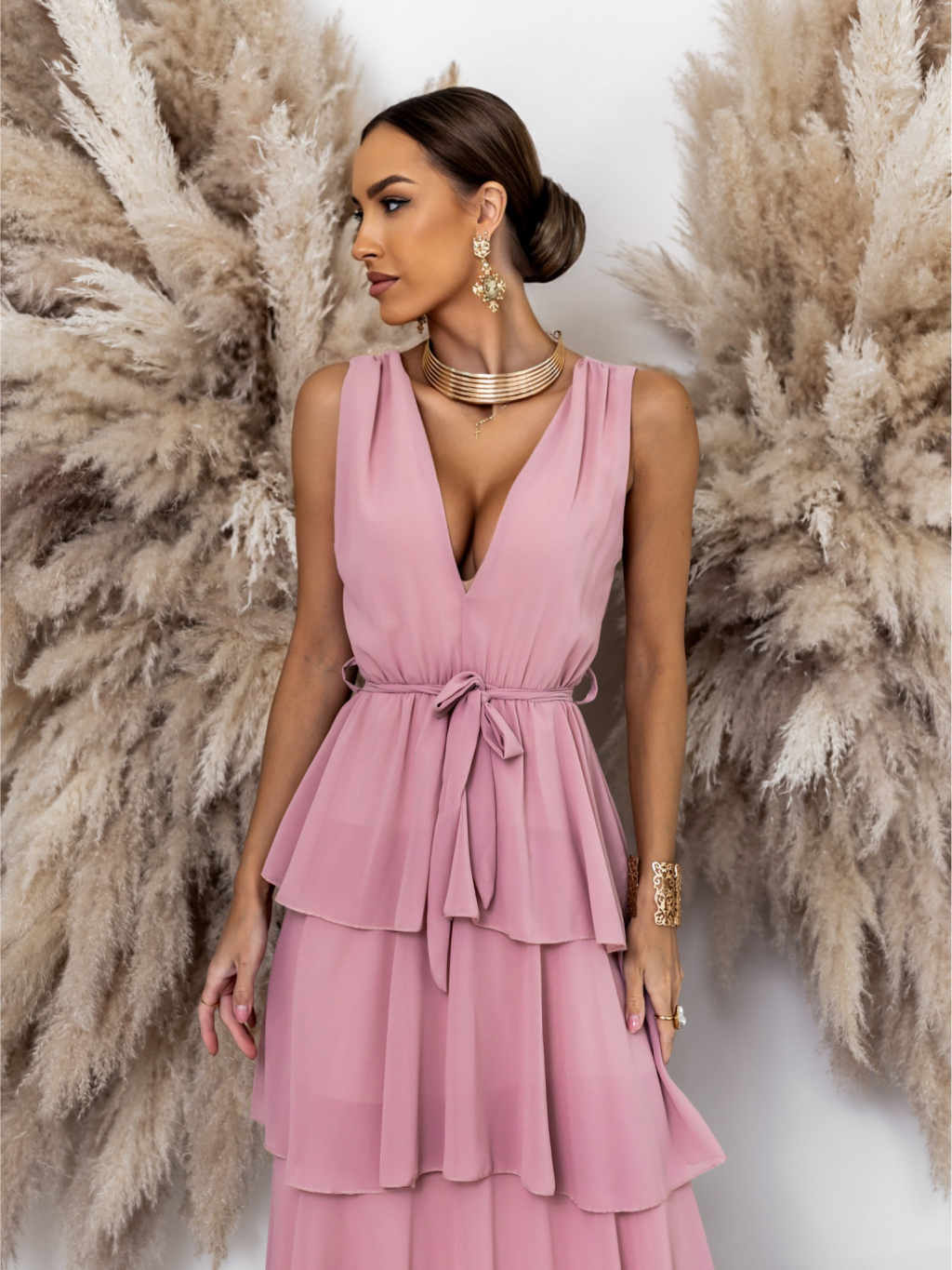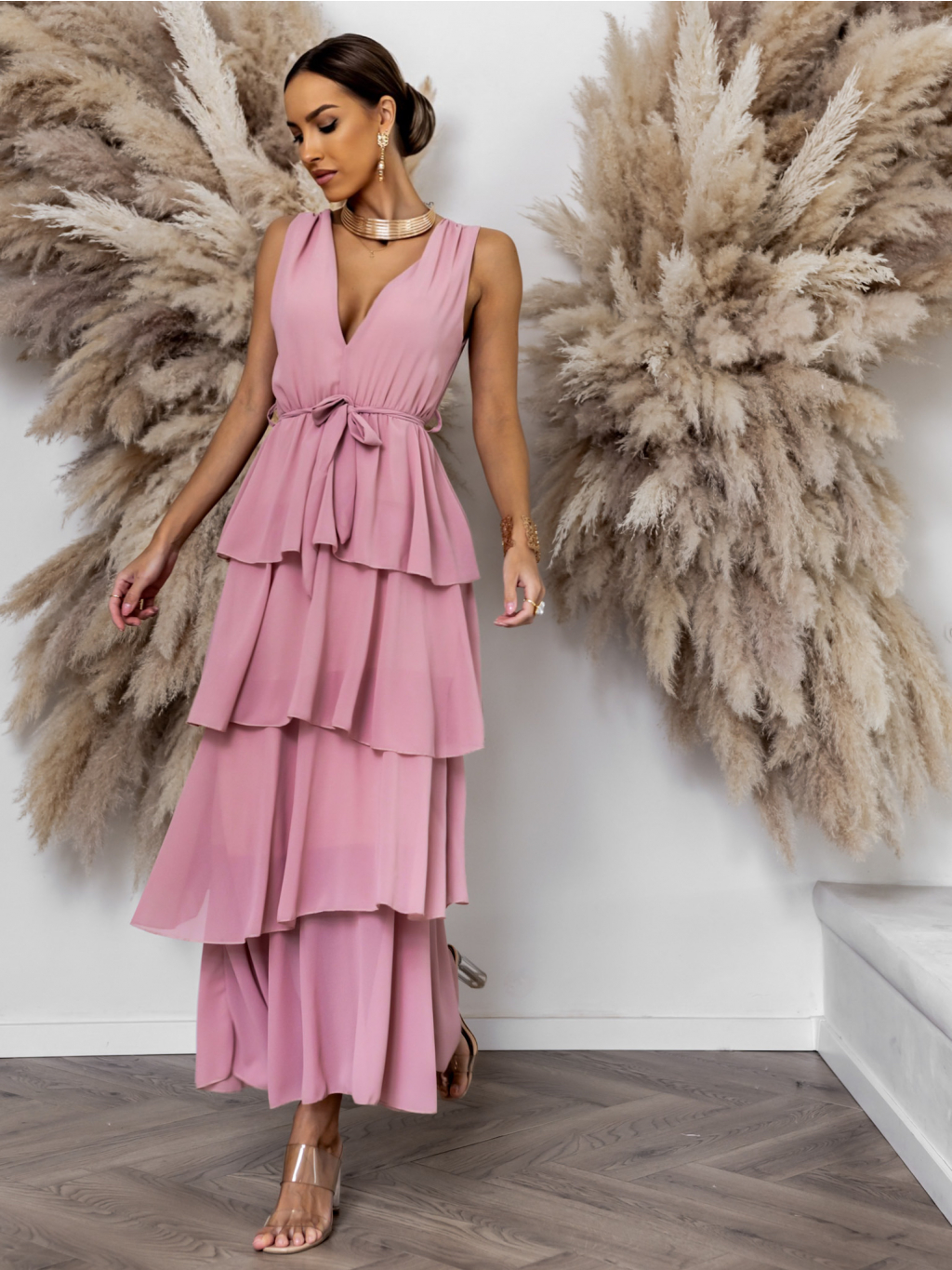 Staroružové dlhé šaty SUSANI s volánikmi pre družičky