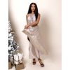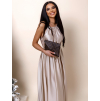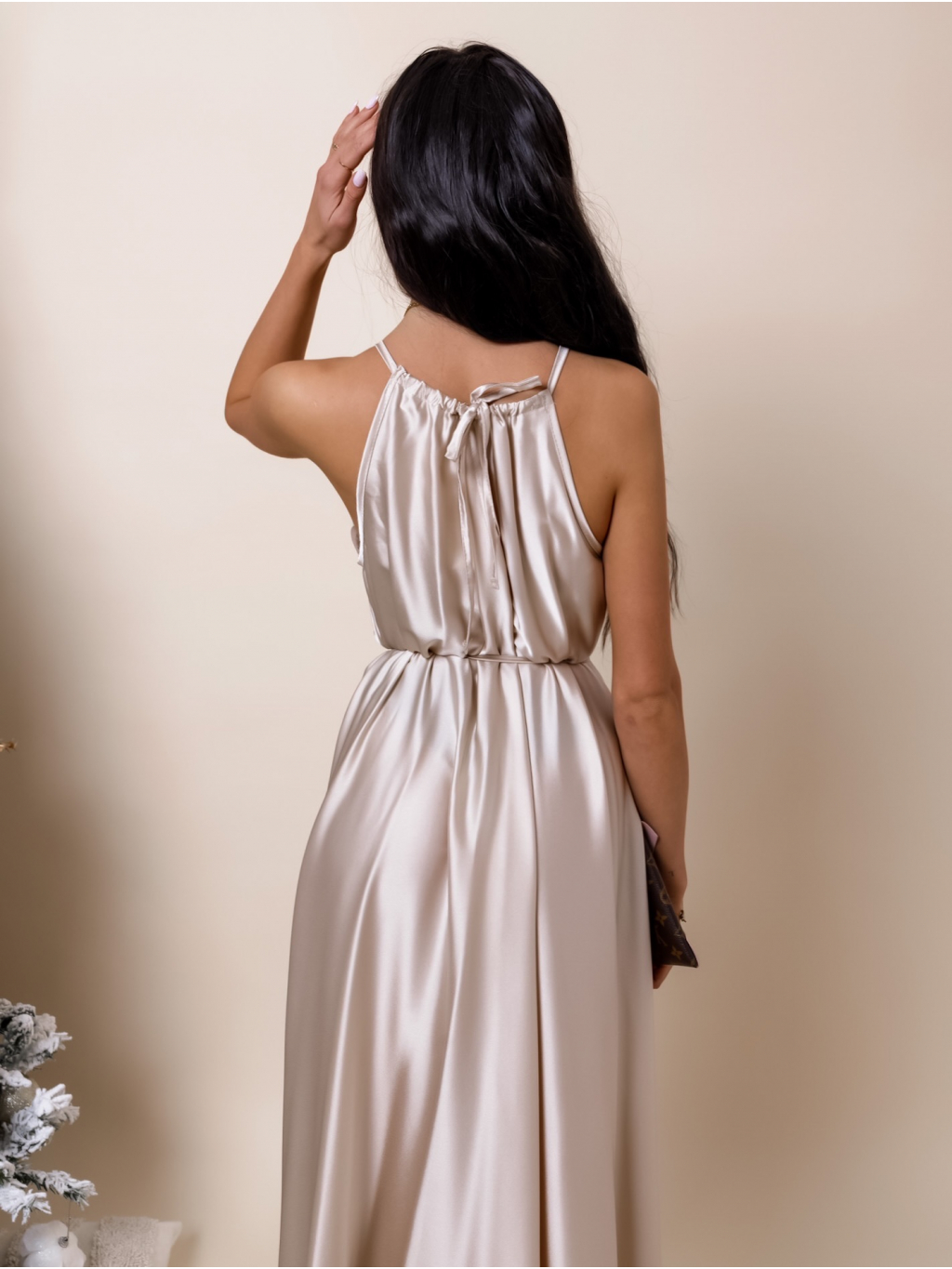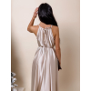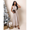 Béžové dlhé lesklé elegantné šaty MADES so zaväzovaním