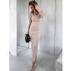 Béžové dlhé šaty EDEMS so zvonovými rukávmi