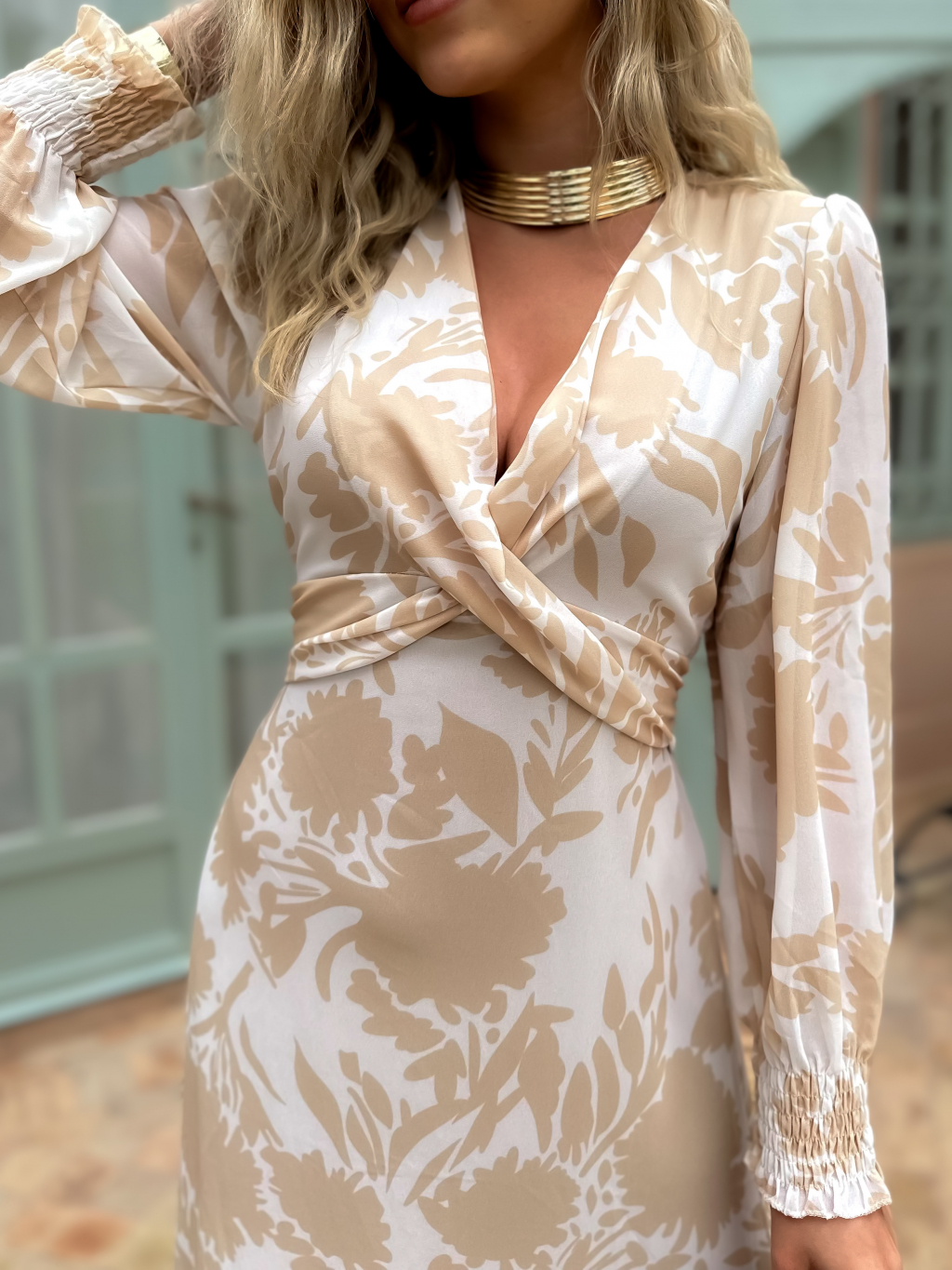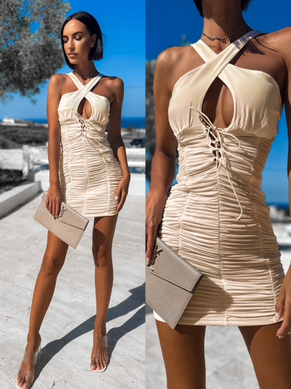 Béžové elegantné šaty CIHAN s dlhým rukávom
