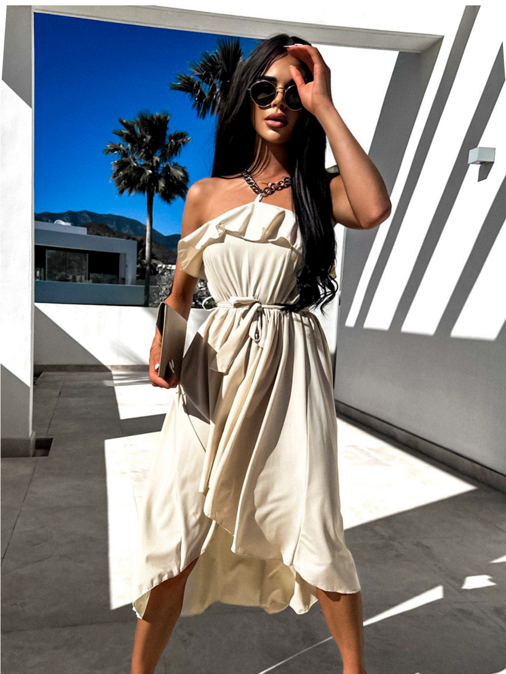 Béžové elegantné šaty LILLENI so zlatým detailom
