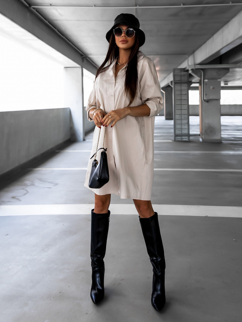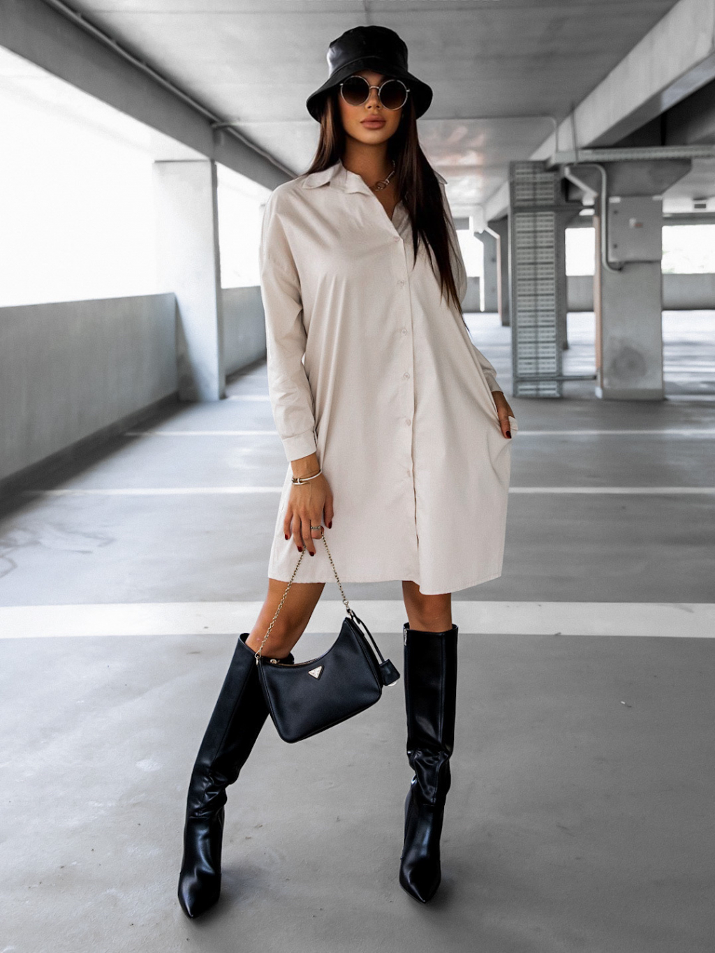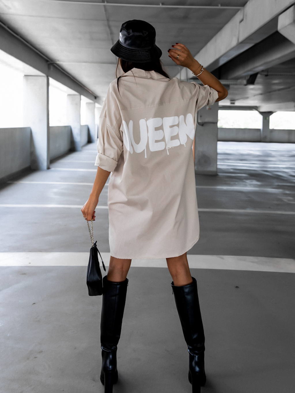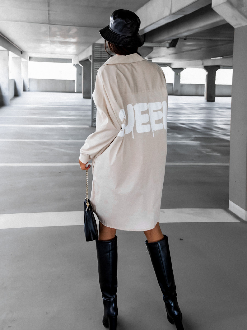 Béžové košeľové šaty ROY s bielym nápisom