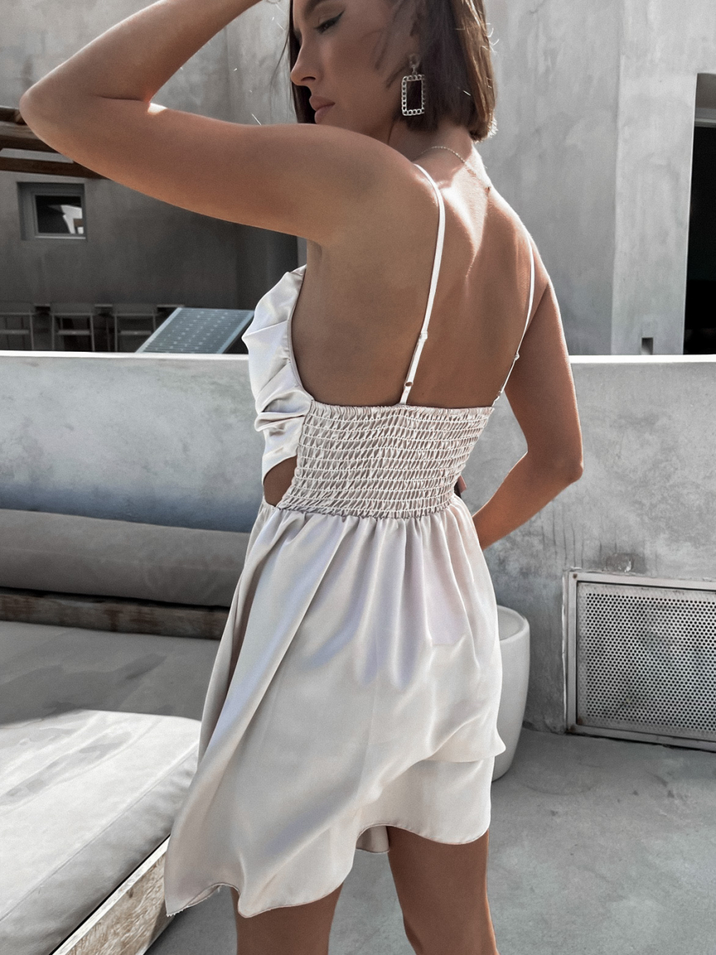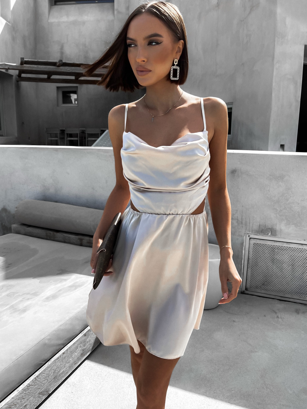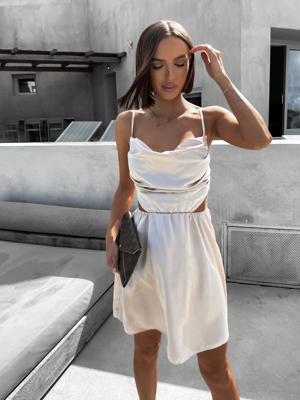 Béžové lesklé elegantné šaty JEWELRY s prestrihmi