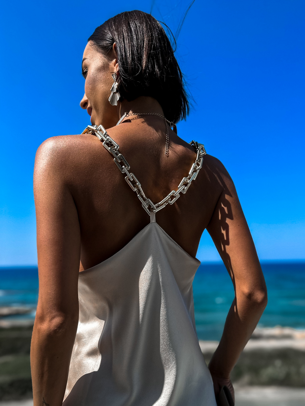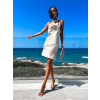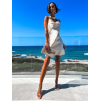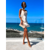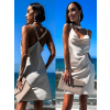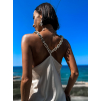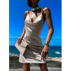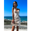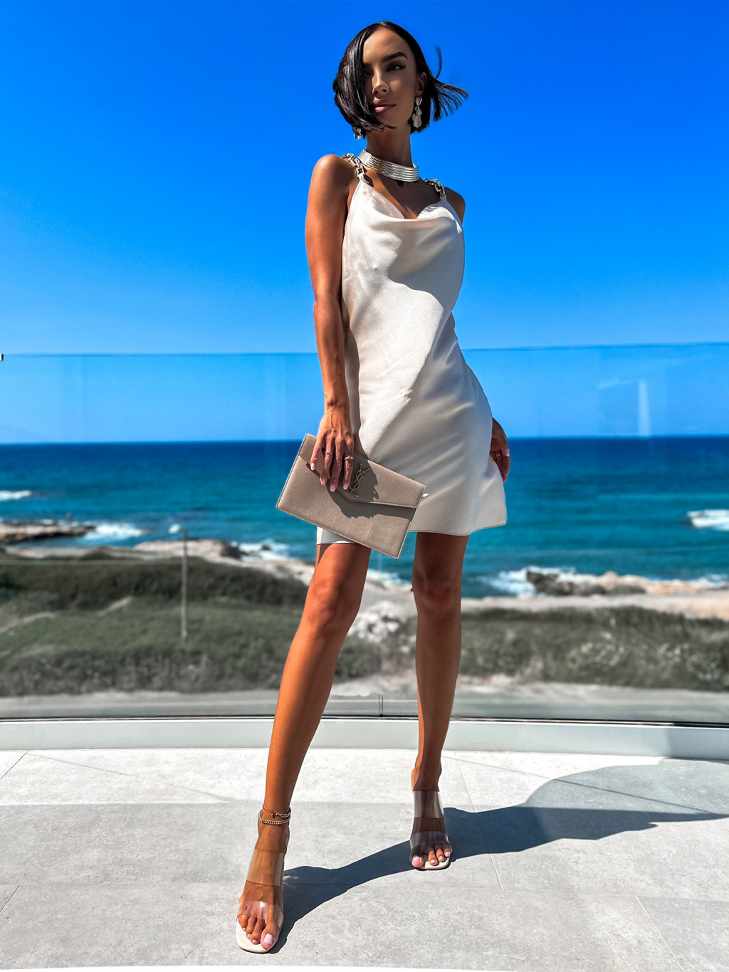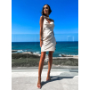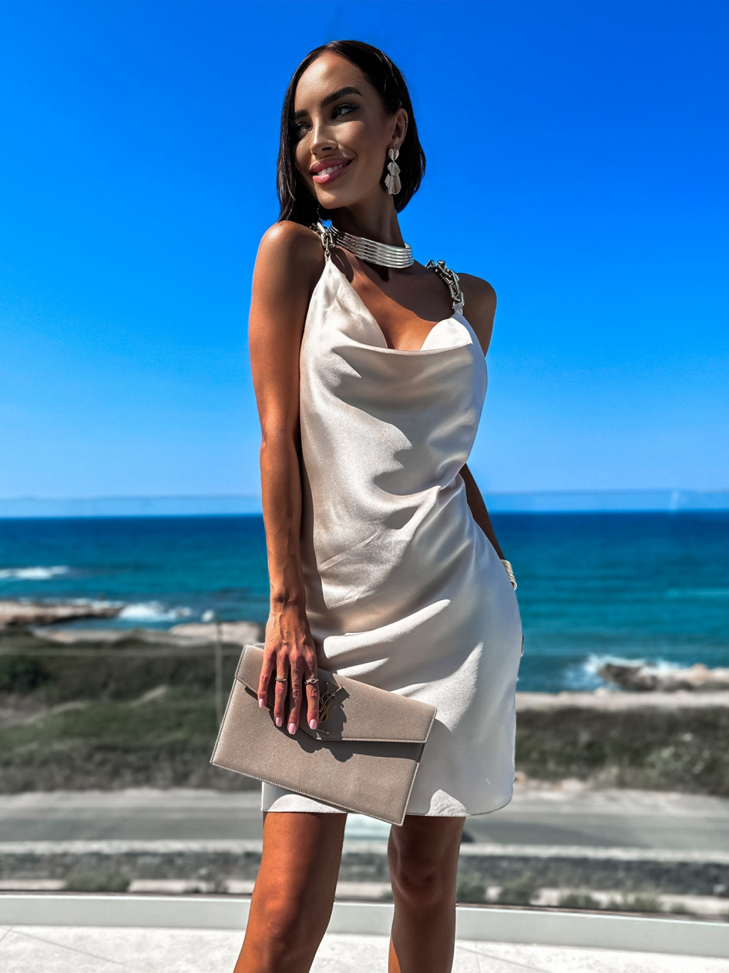 Béžové lesklé šaty IRELY so zlatými retiazkami