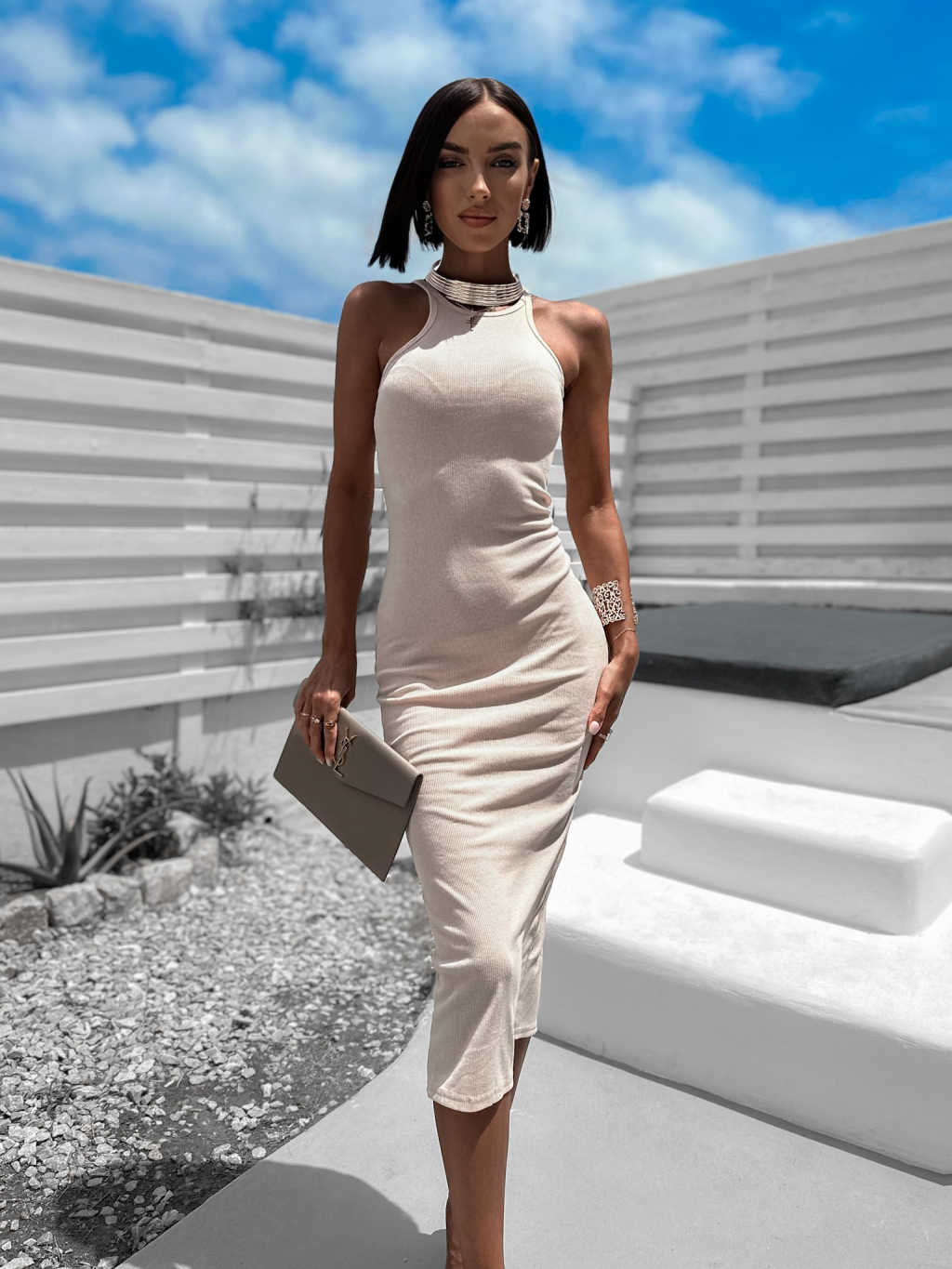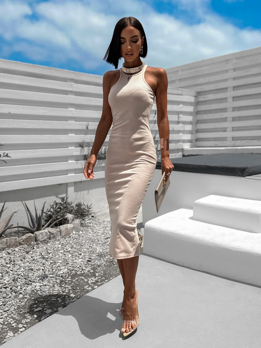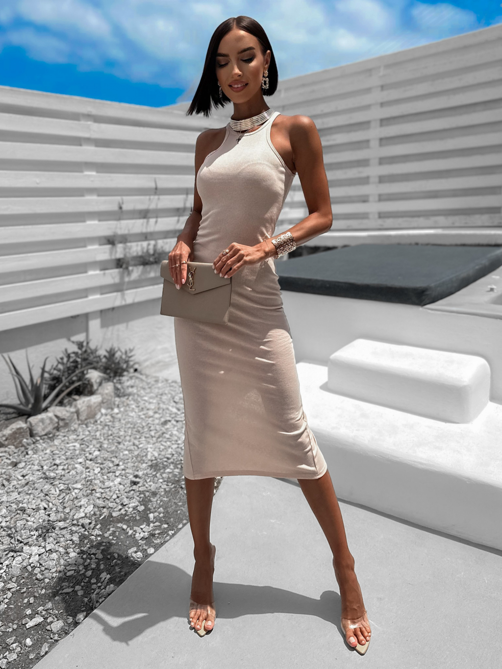 Béžové rebrované šaty LAYRER