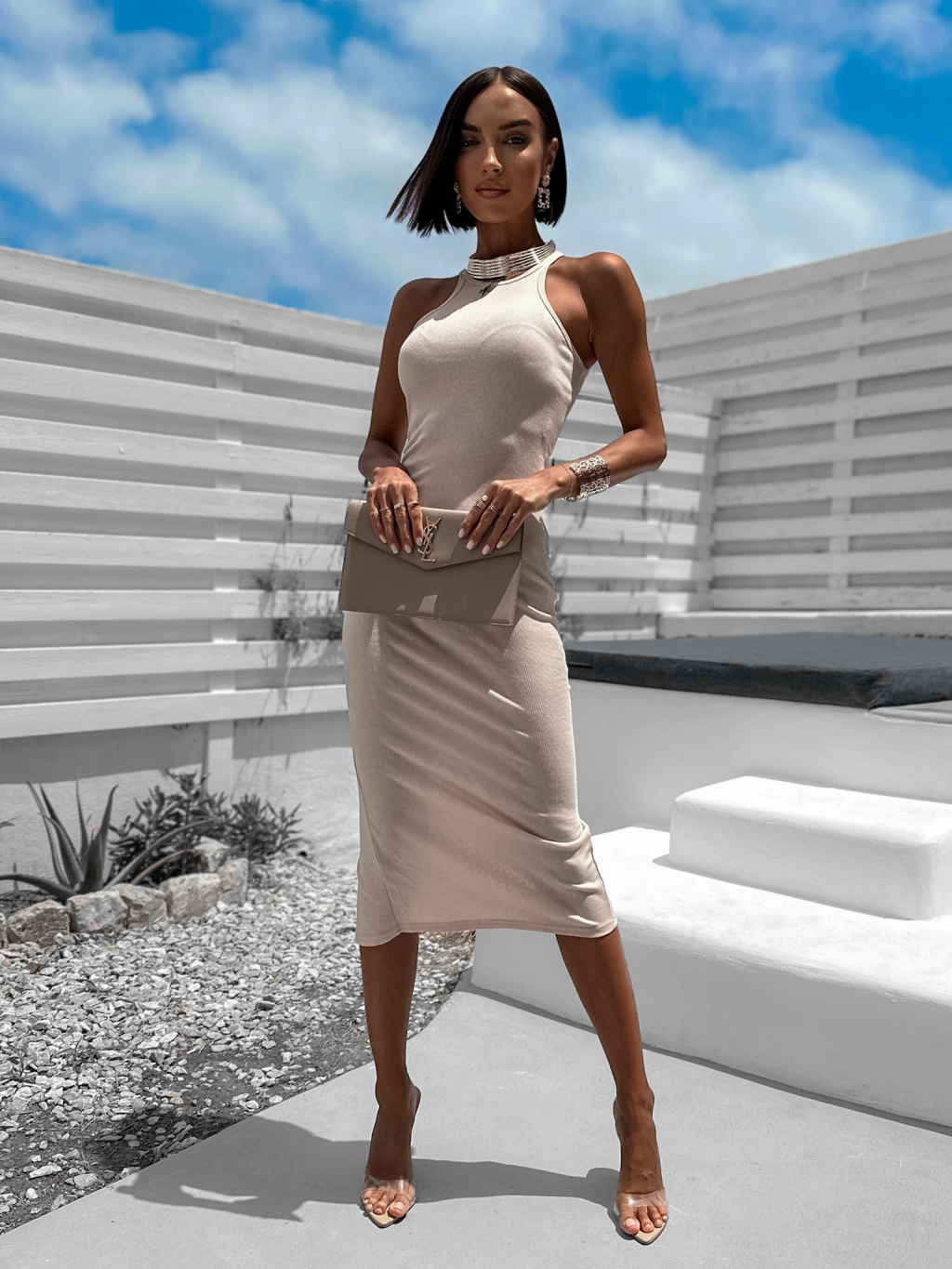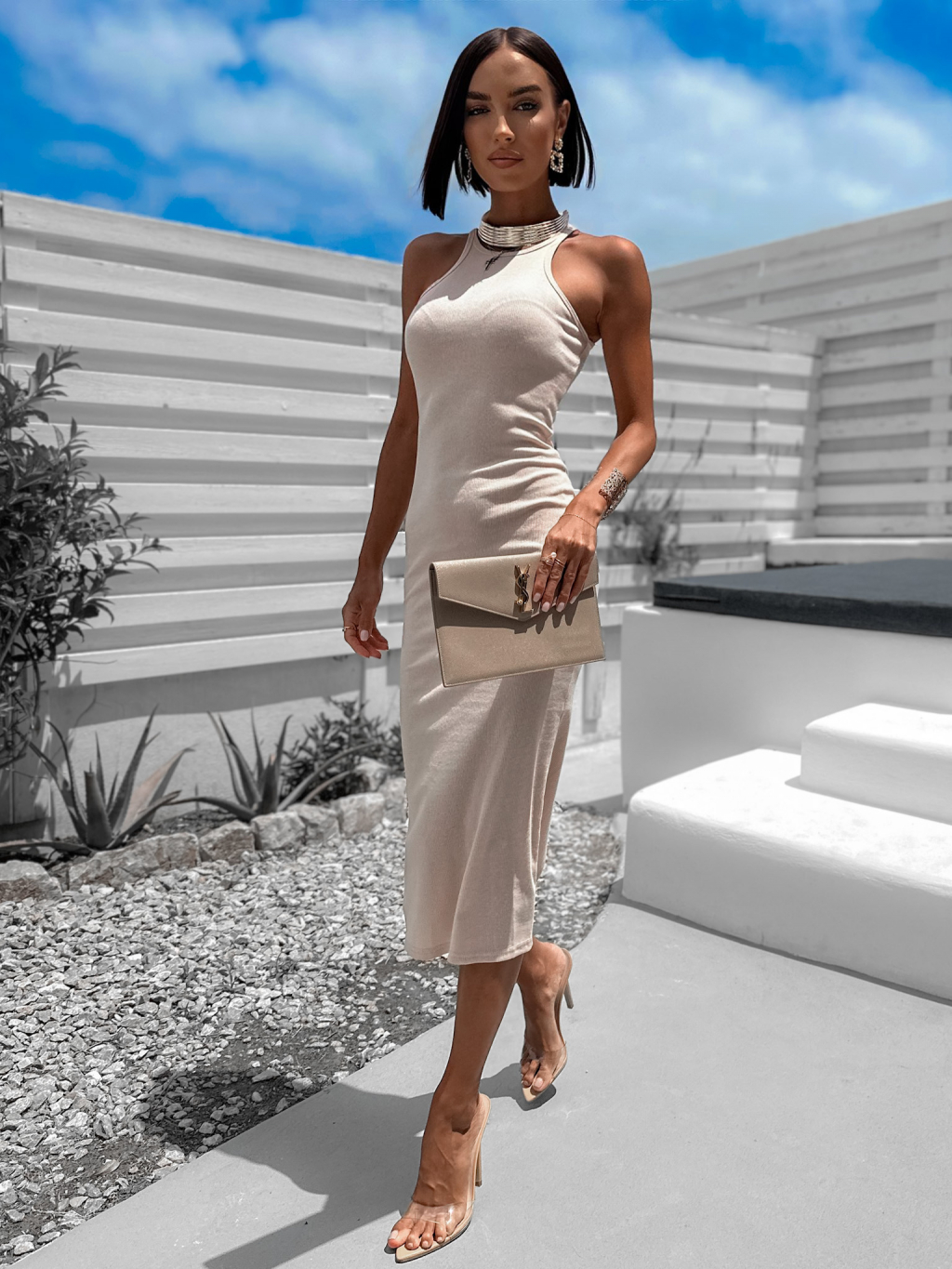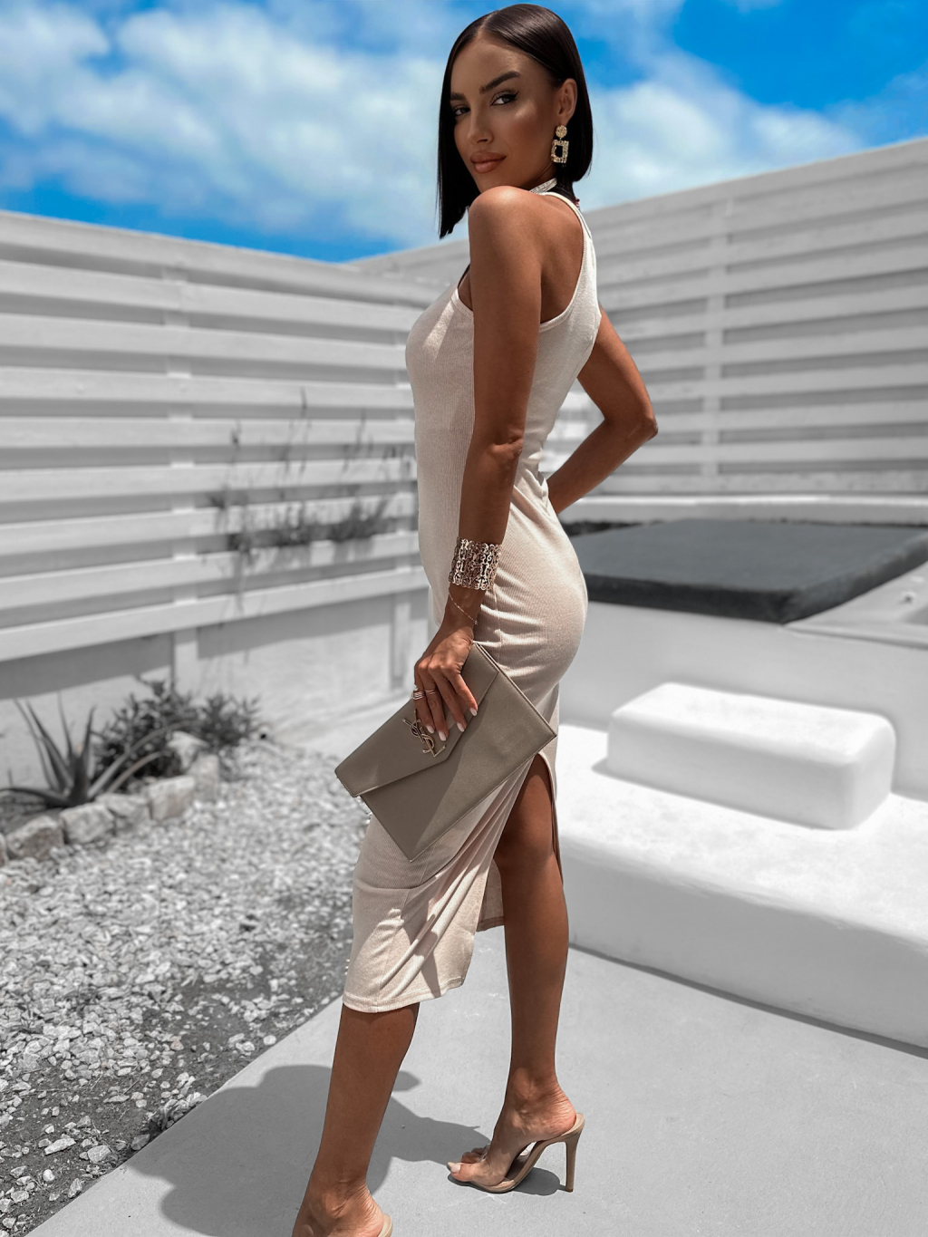 Béžové rebrované šaty LAYRER