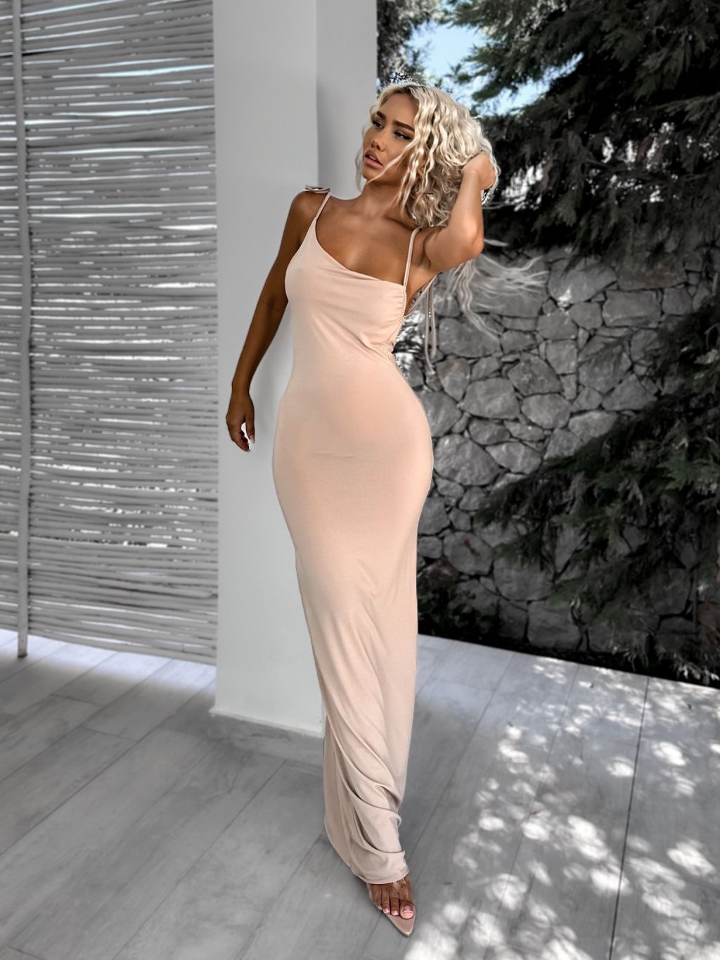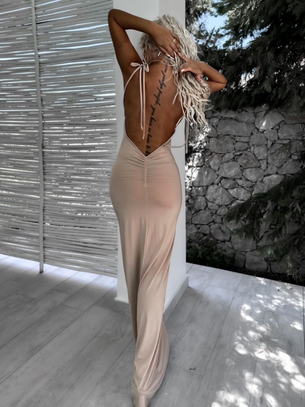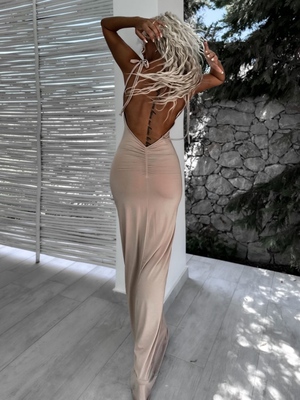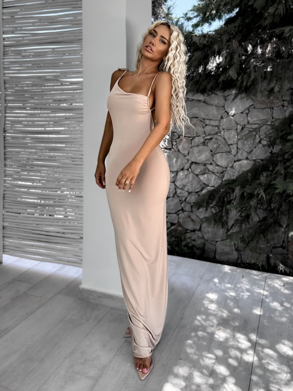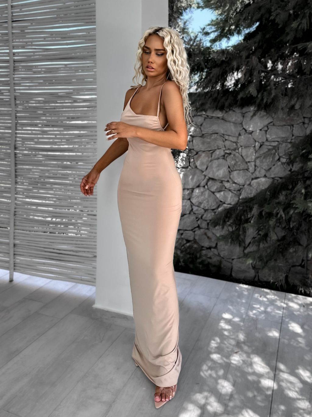 Béžové šaty KONTRAME so zaväzovaním na ramenách