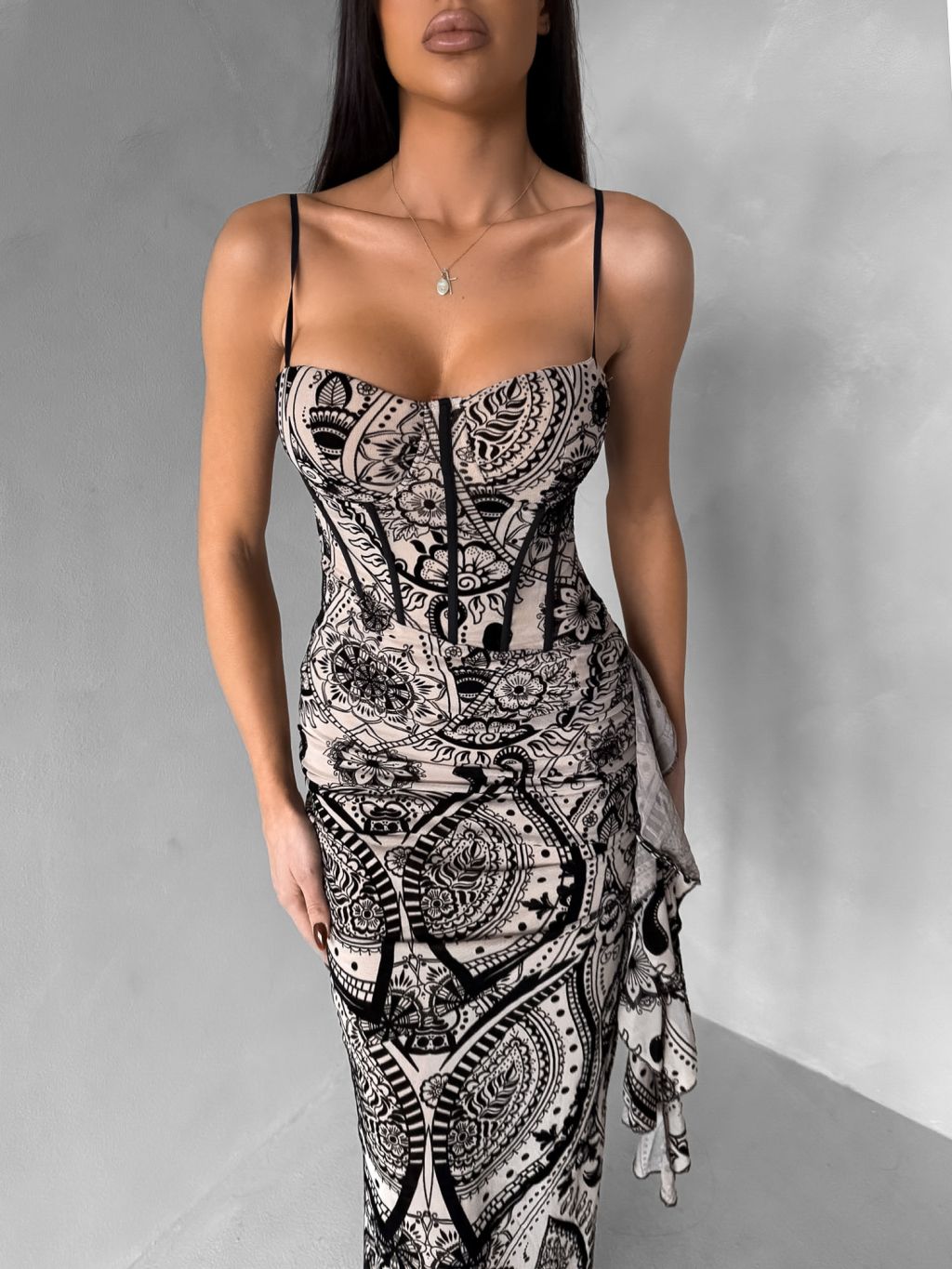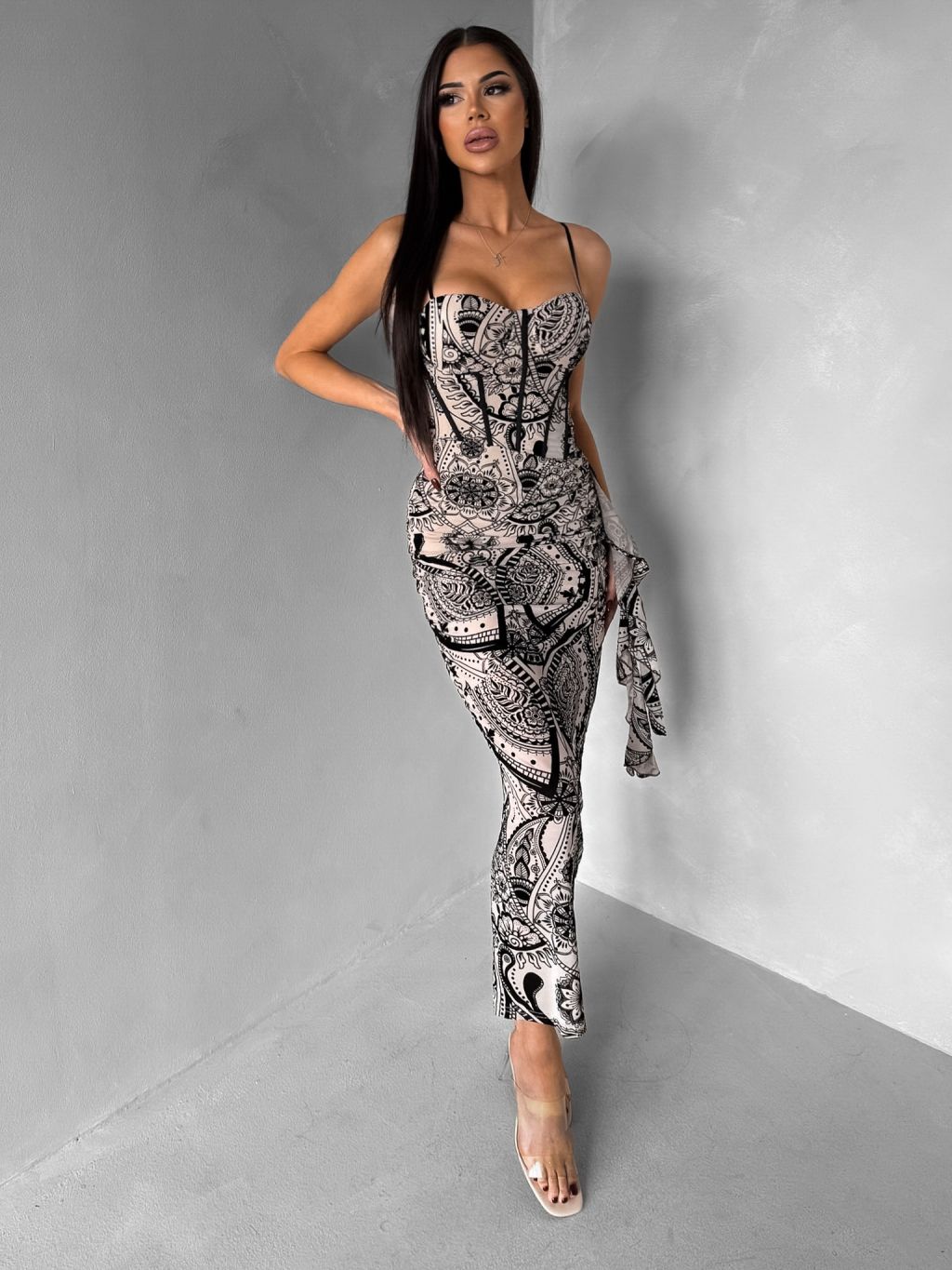 Béžové spoločenské korzetové šaty SOLVIENE s ramienkami