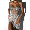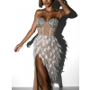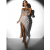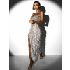 Béžové trblietavé šaty KILLUA s kamienkami a perím