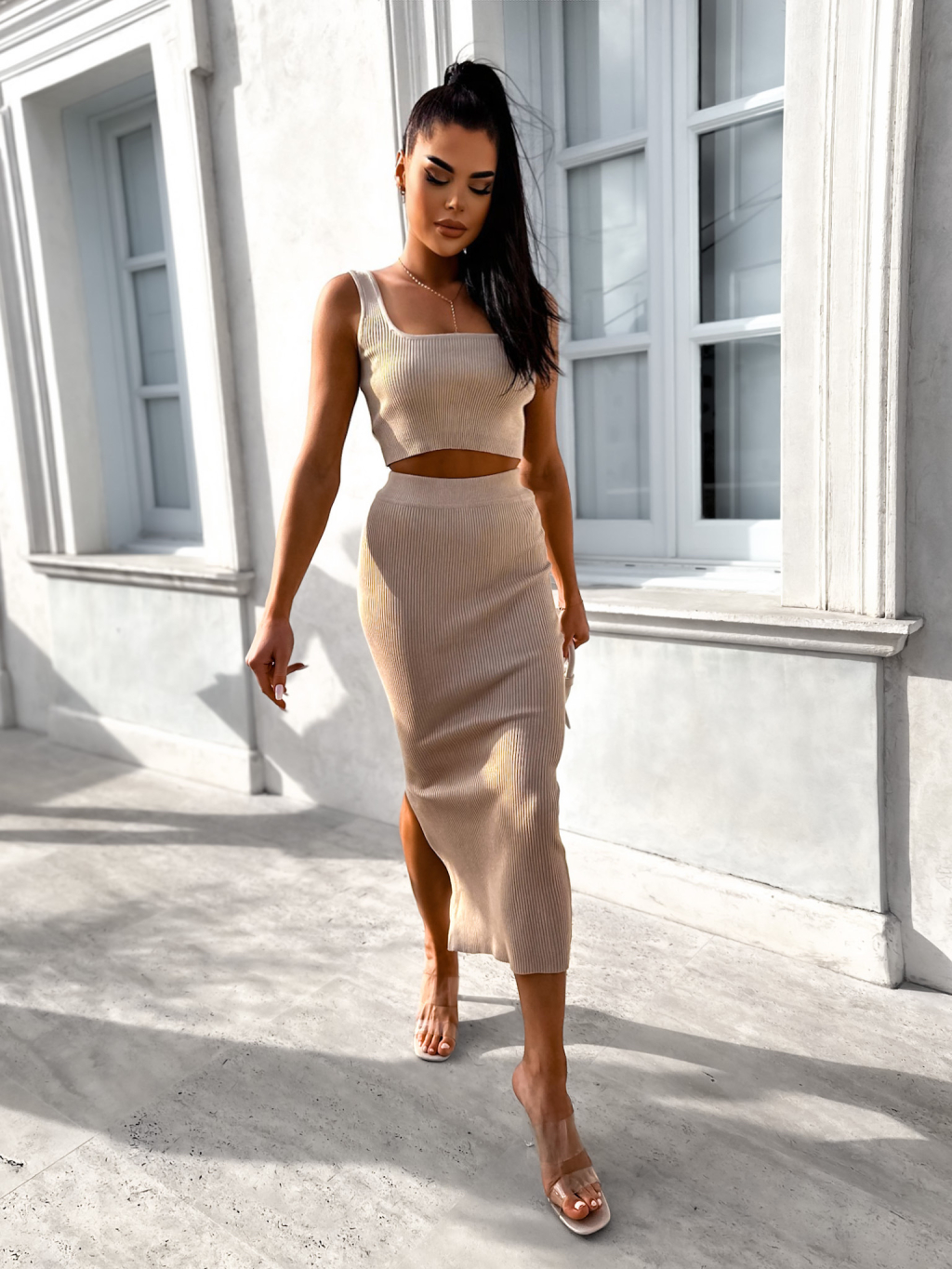 Béžový dvojdielny komplet QUENTEN s rázporkom
