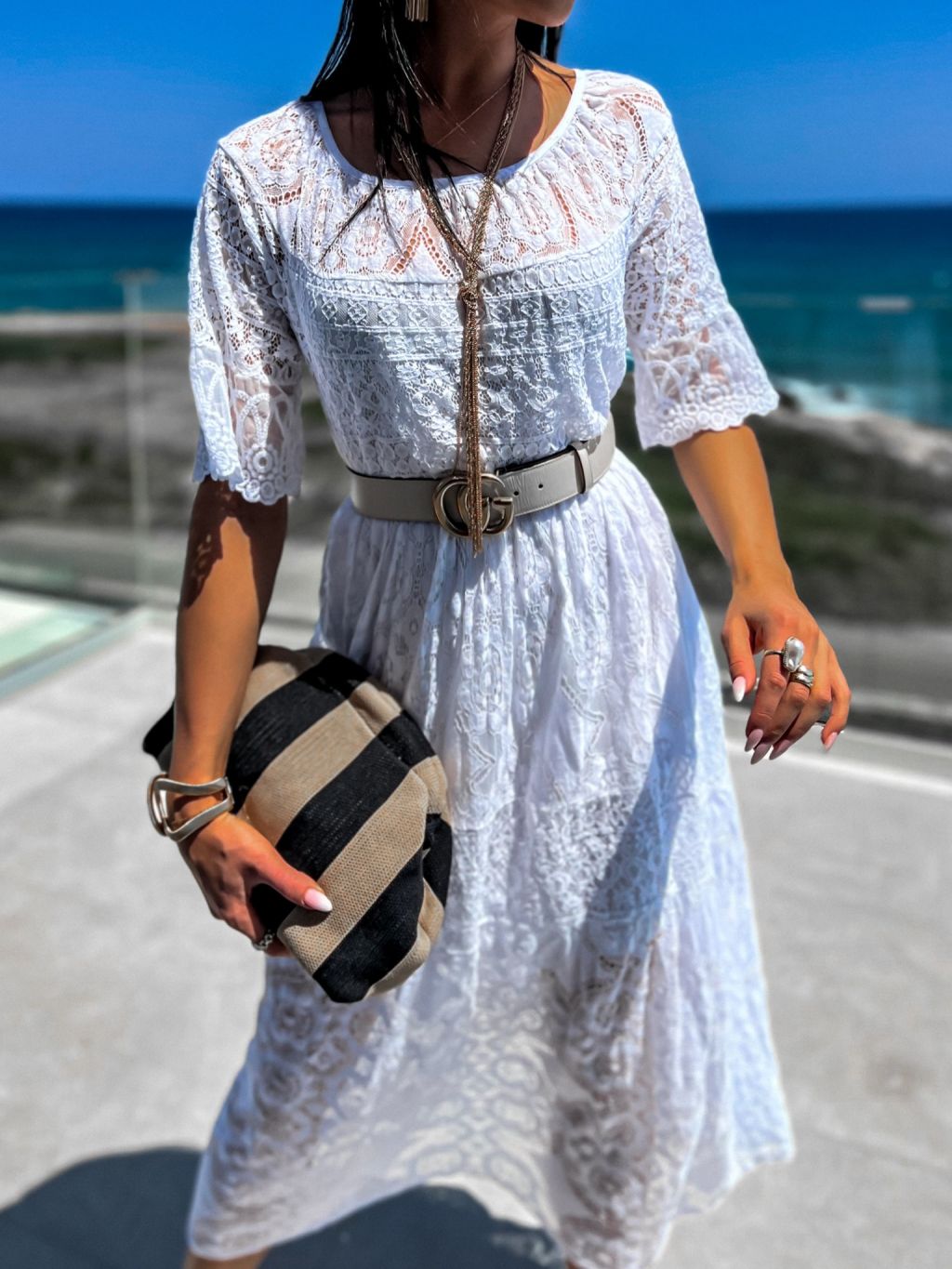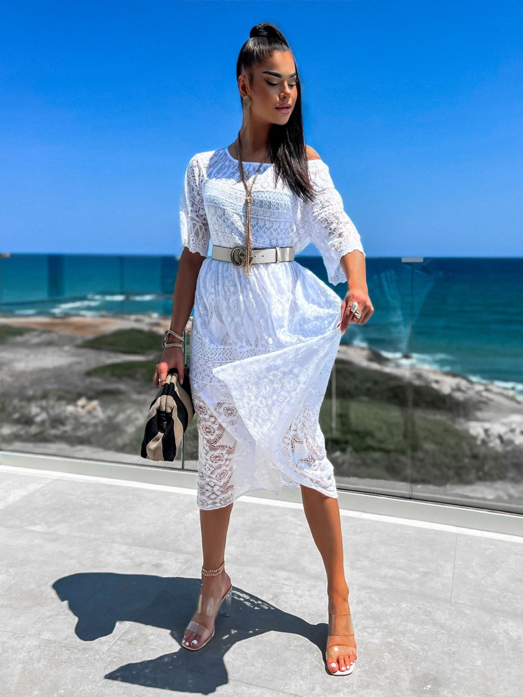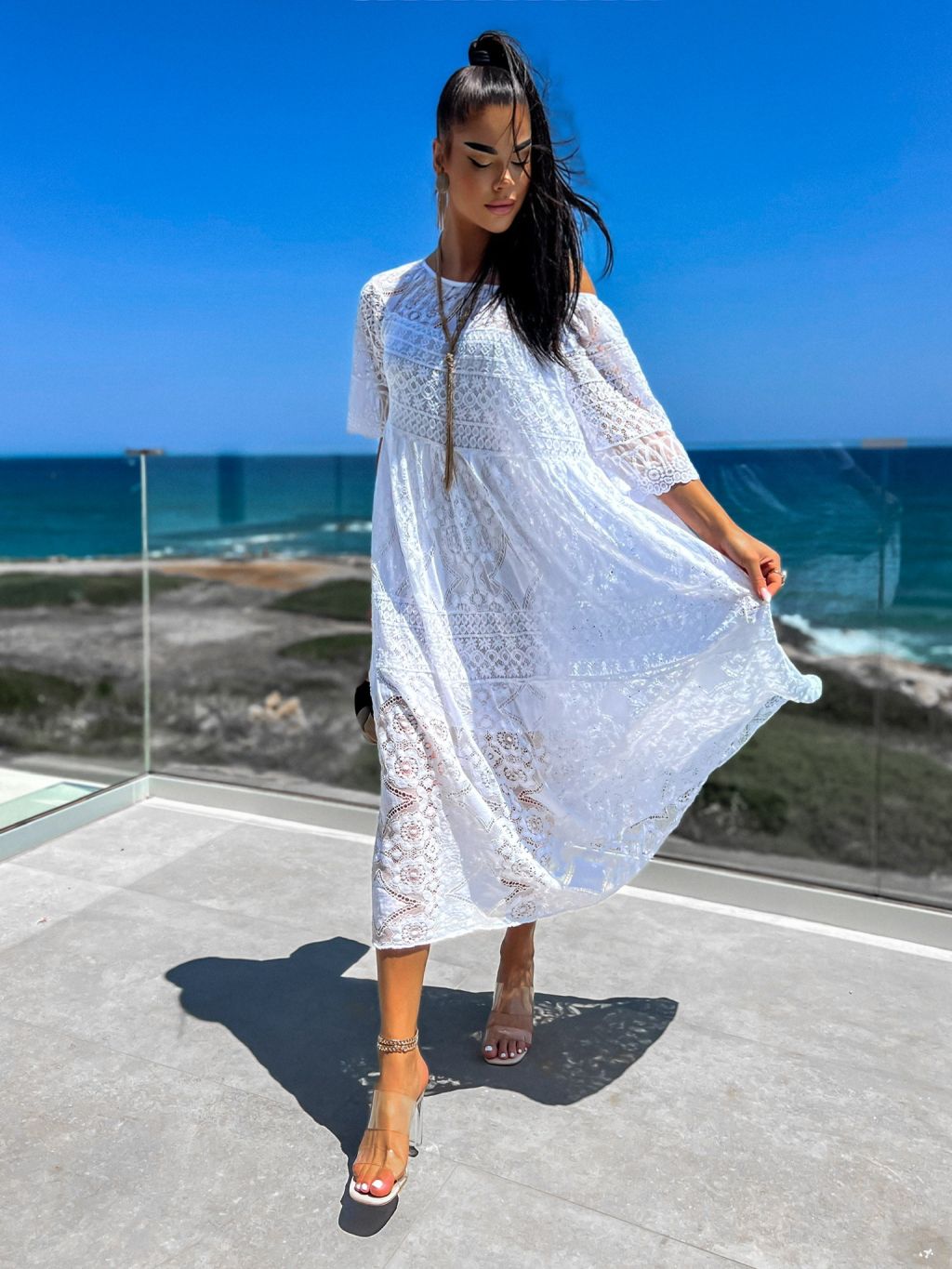 Biele dlhé čipkované šaty TROUELE