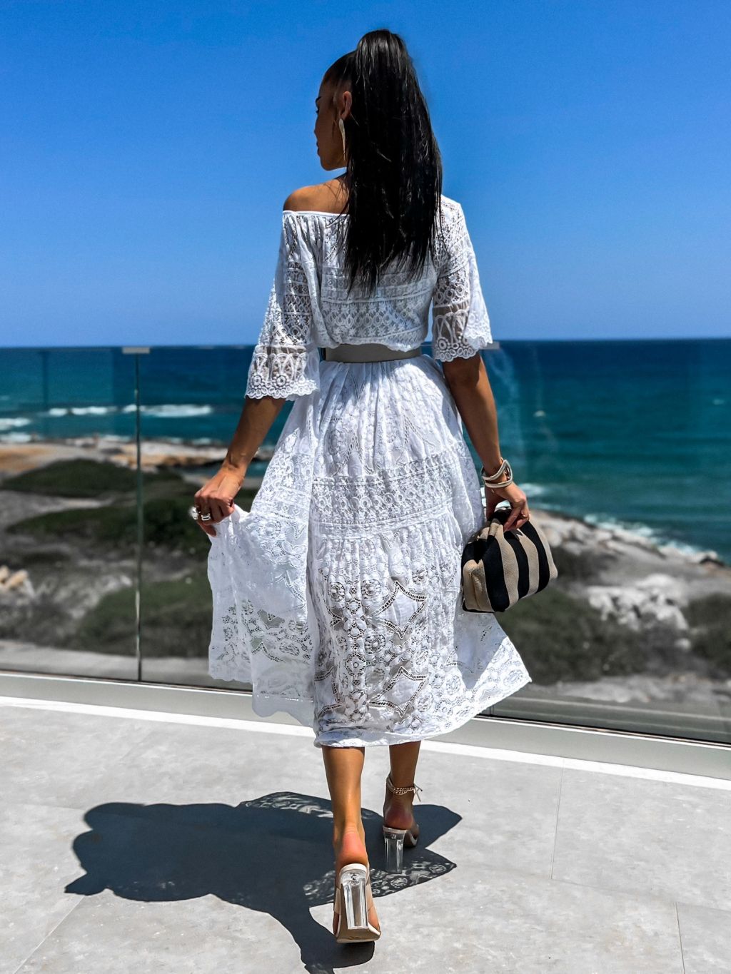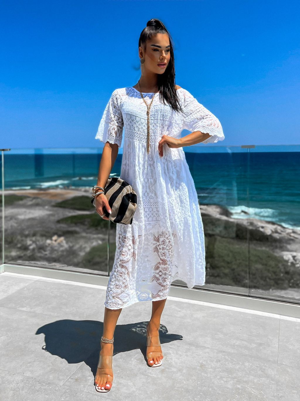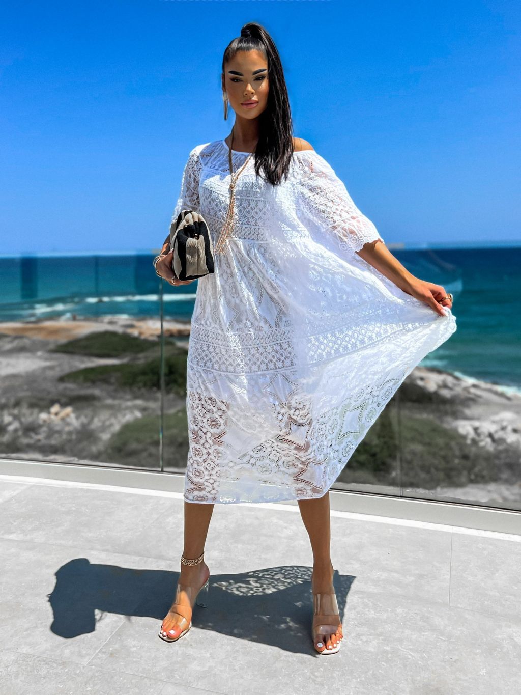 Biele dlhé čipkované šaty TROUELE