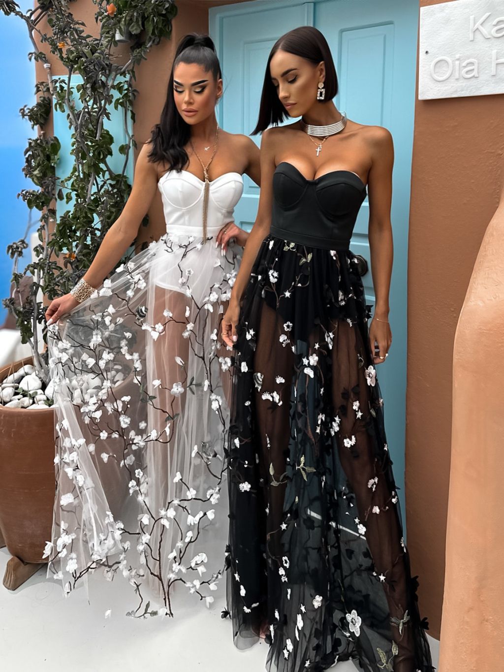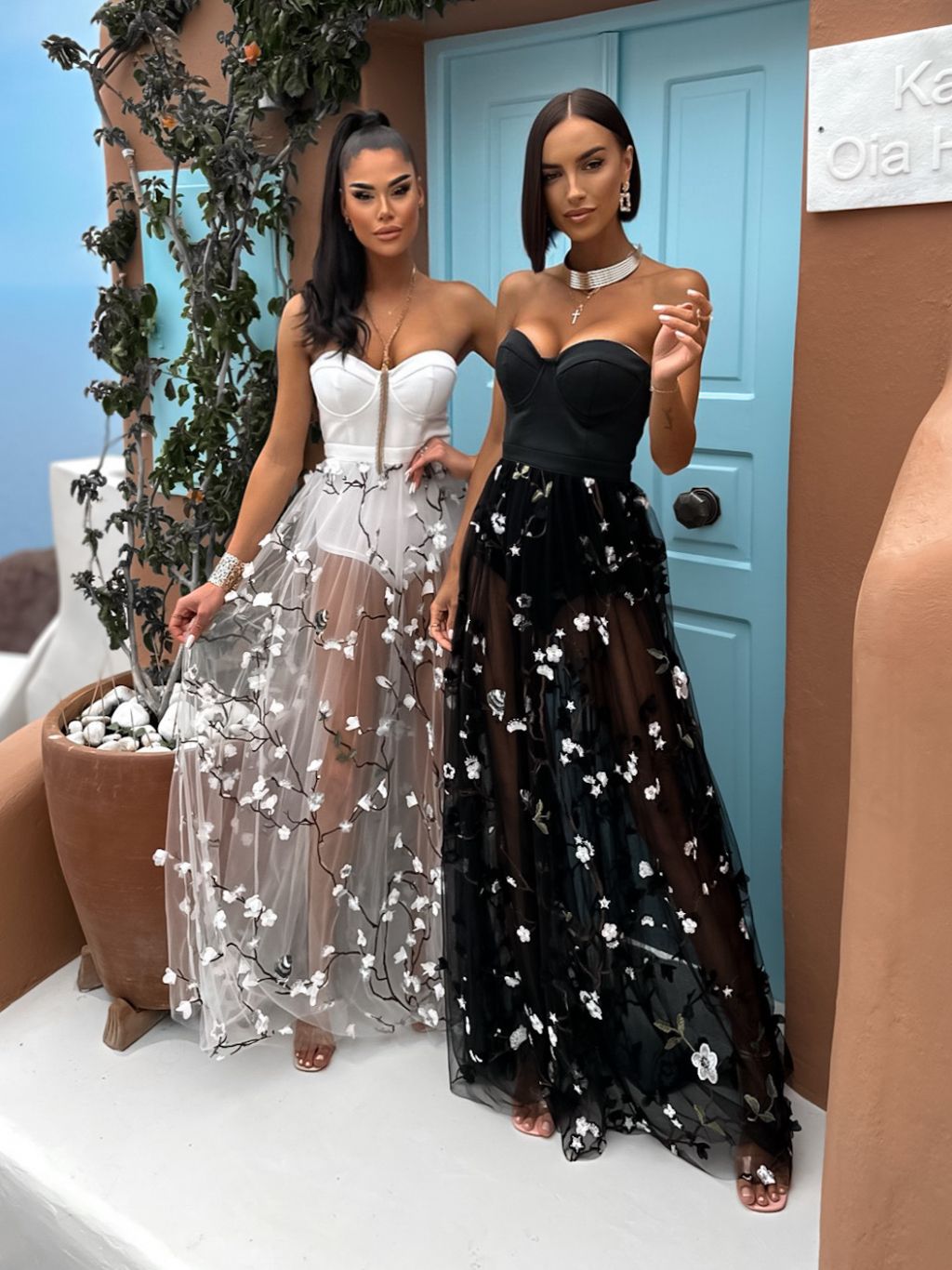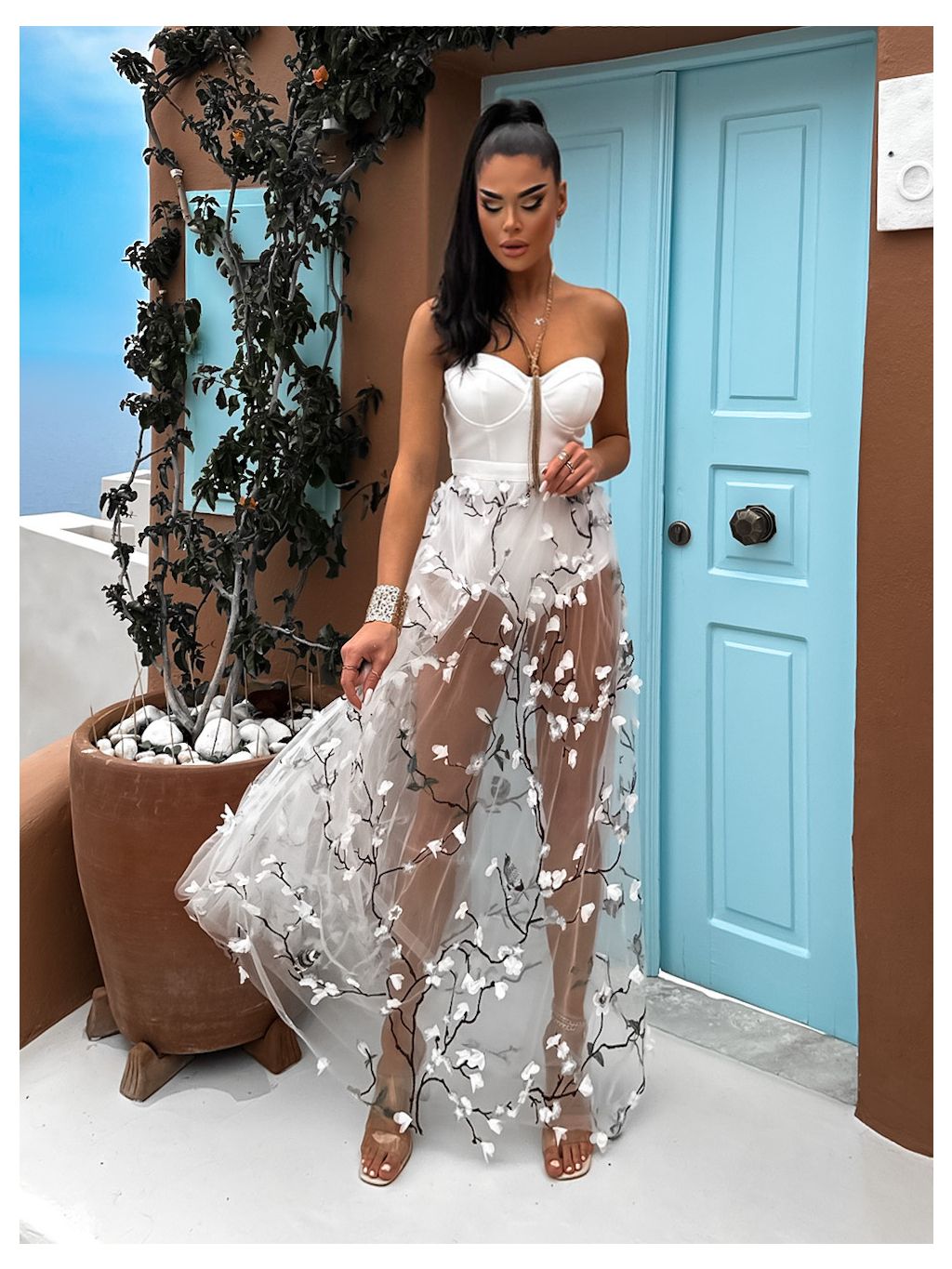 Biele dlhé elegantné šaty COPPYRE s kvetinovým vzorom