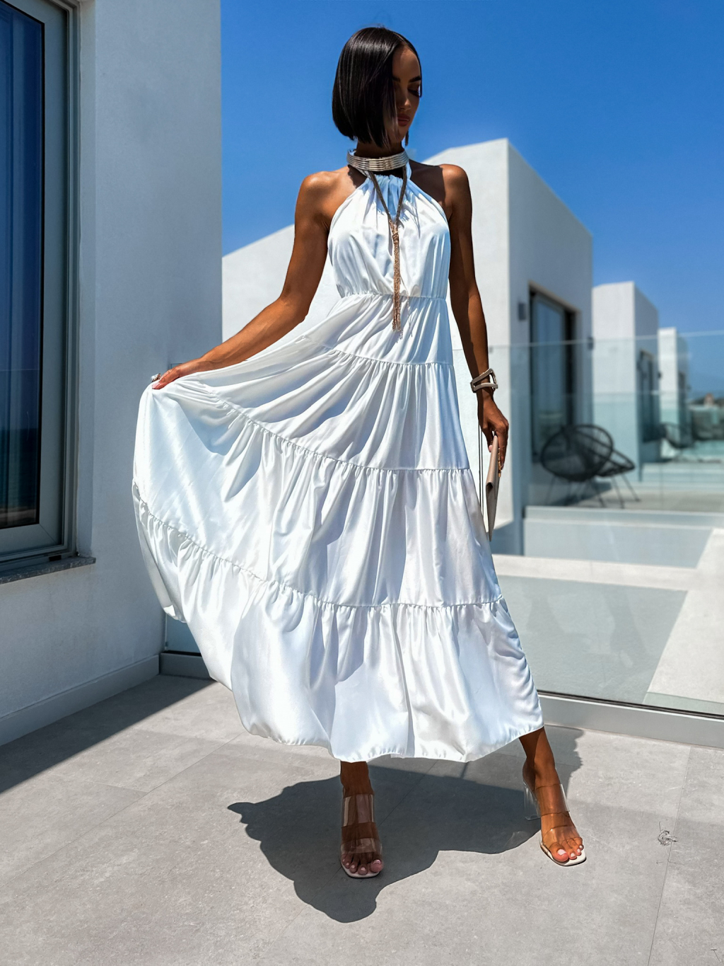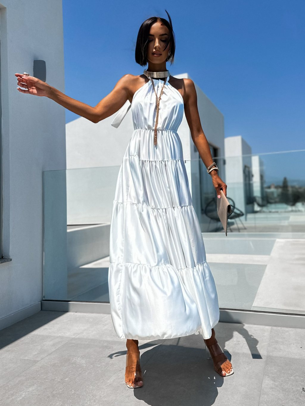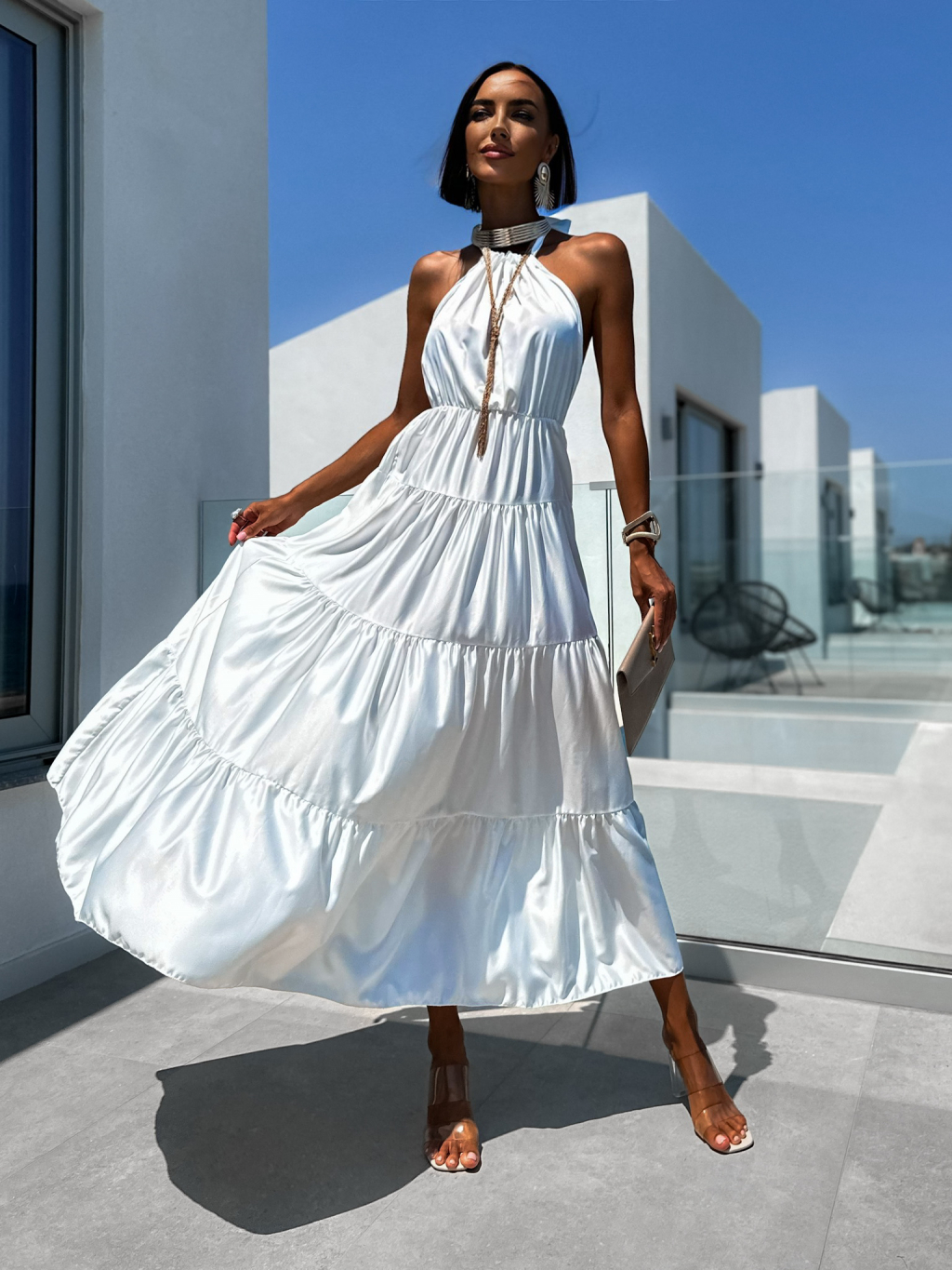 Biele dlhé elegantné šaty FERNS s prestrihom na chrbte